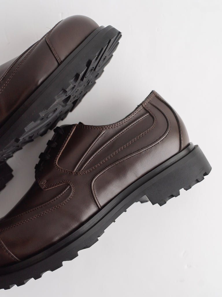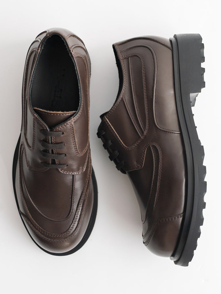 滑らかなカーフレザーで作られた Tracer Derby は、平らな編み込みレースと流れるような縫い目のディテールがアクセントになった、洗練されたシルエットを生み出します。