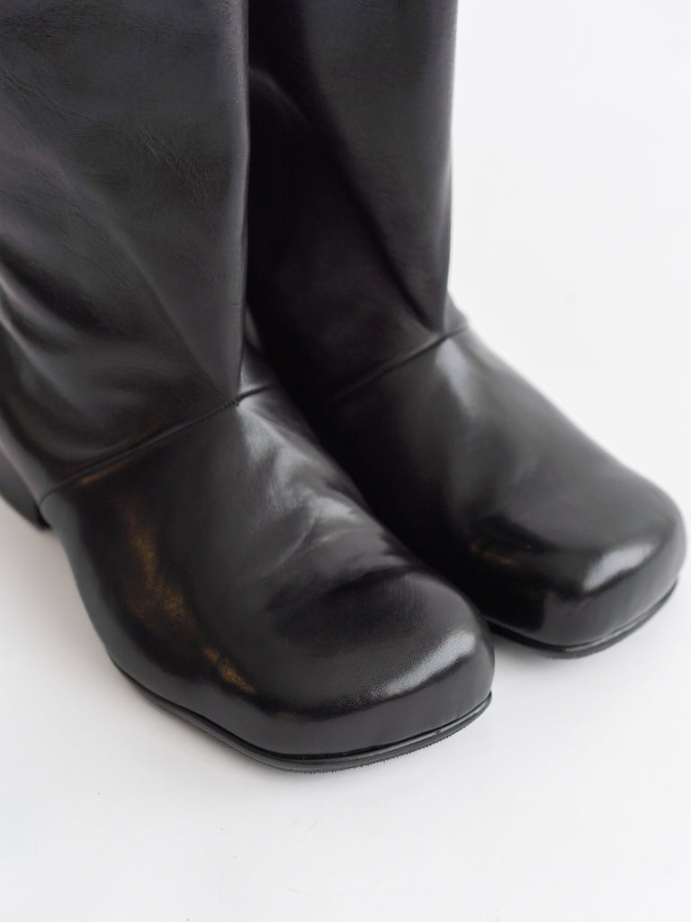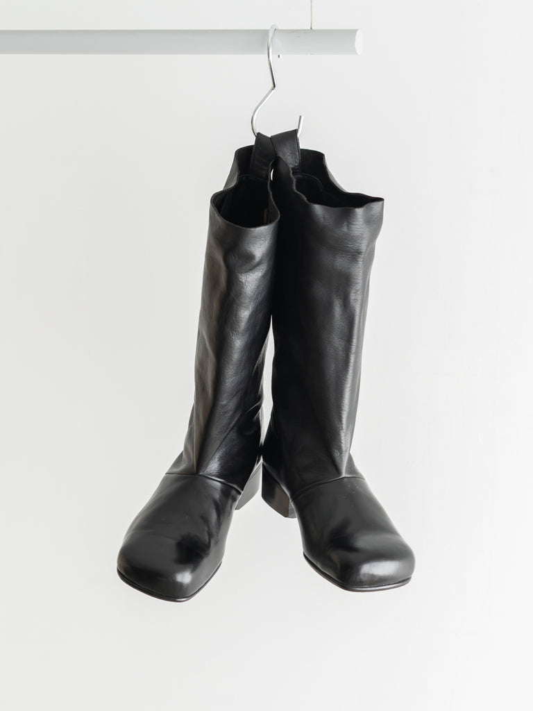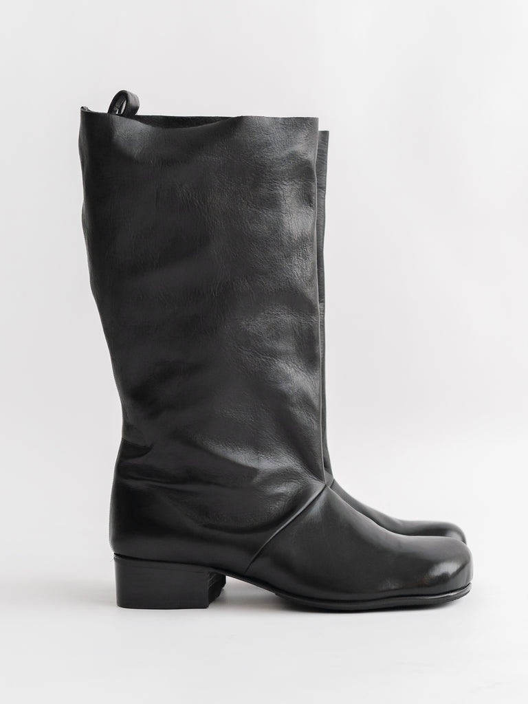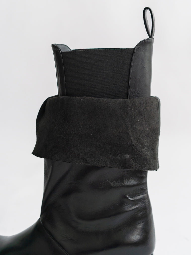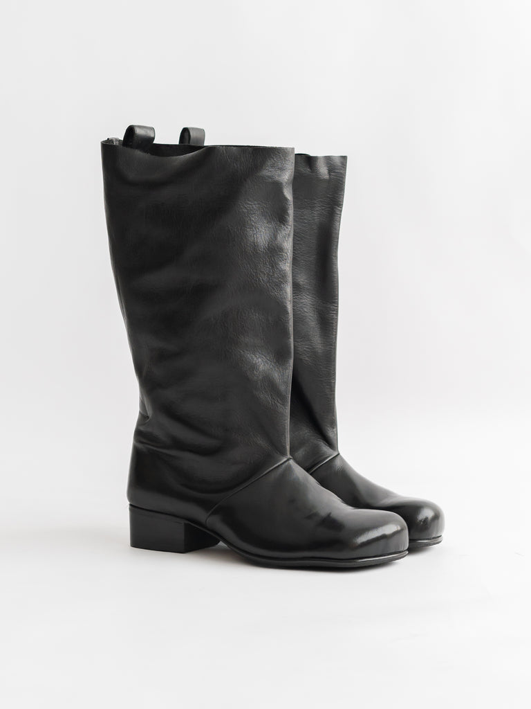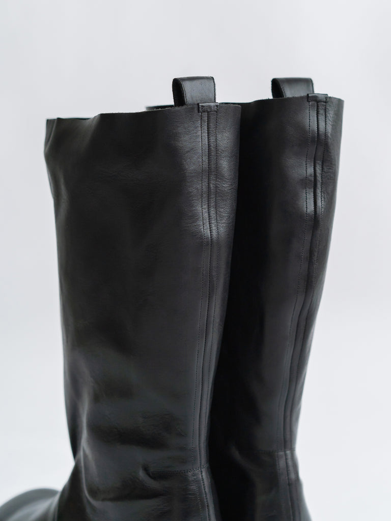 その独特な底面型からまっすぐに立ち上がるオーバーサイズの柔らかいブーツデザインになるようイメージしました。