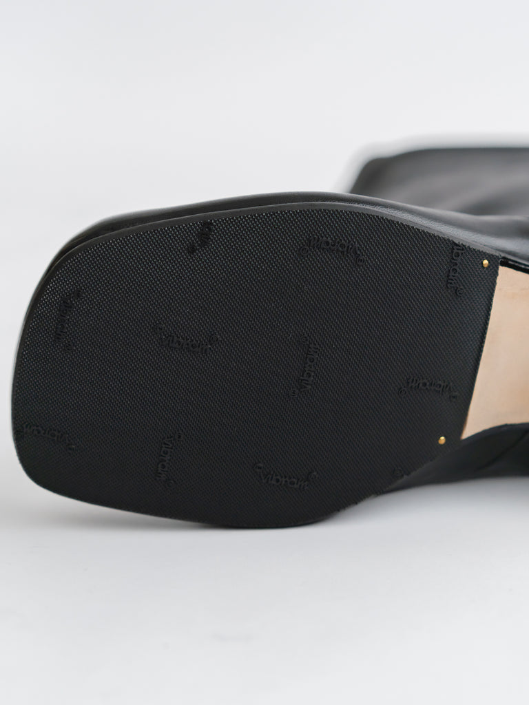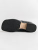 サンダル底面がベースの為、指周りは少しゆとりのあるボリューム感になっており、踵に関しても四角い底面から成る為、ヒール形状もスクエアヒールになっているのが特徴の一つになります。