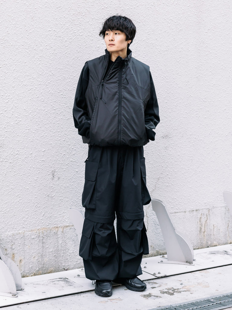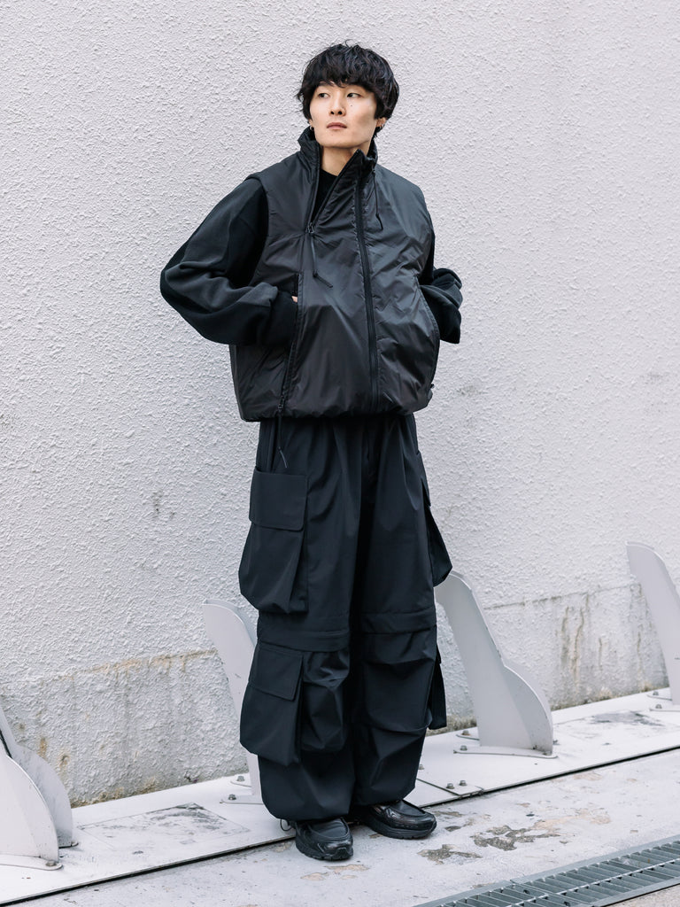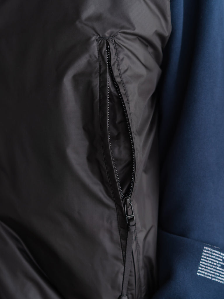大容量の内ポケットを配置し、襟横に配置したファスナーにより、通気性が向上し、快適な着心地を実現。