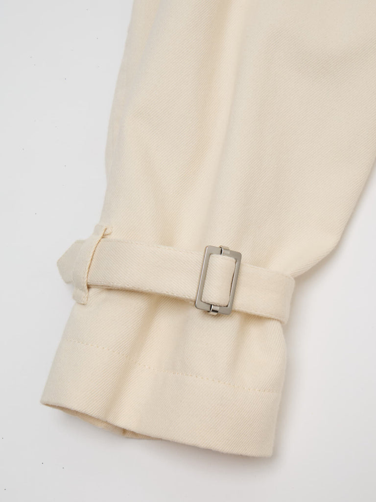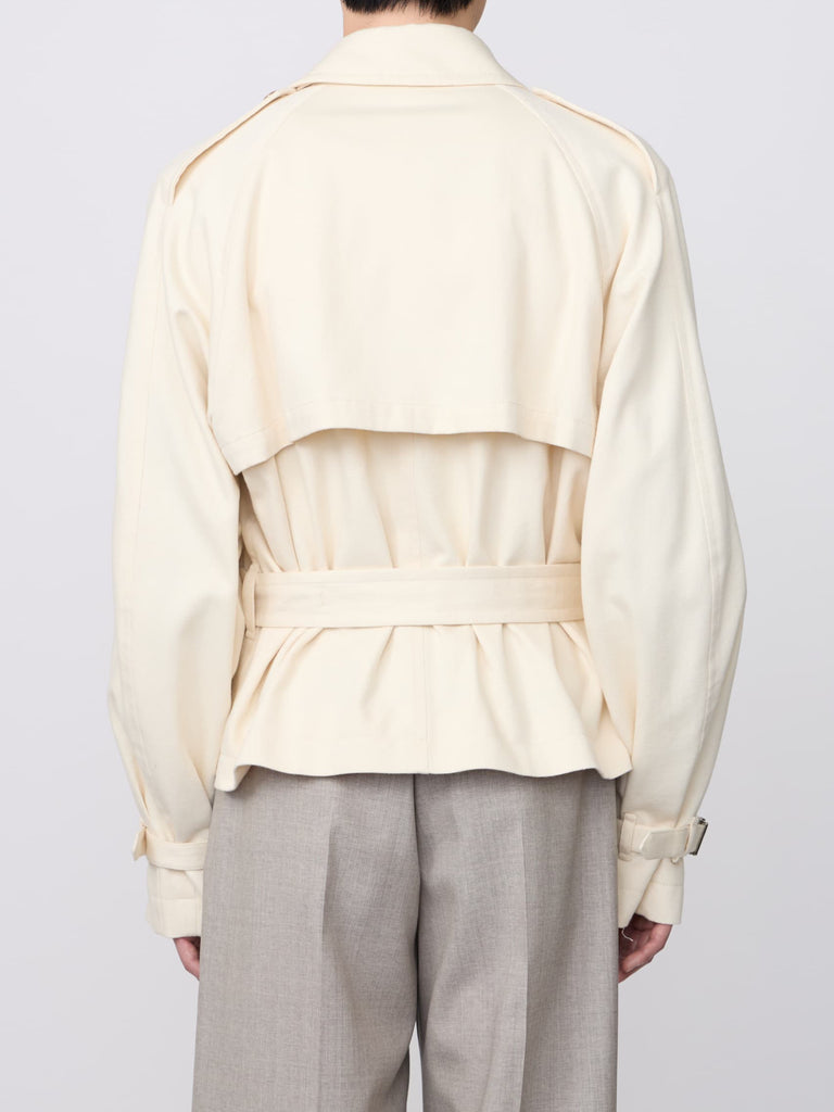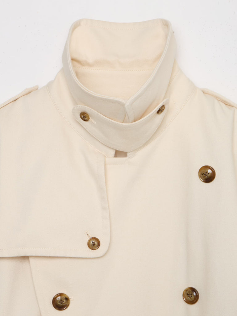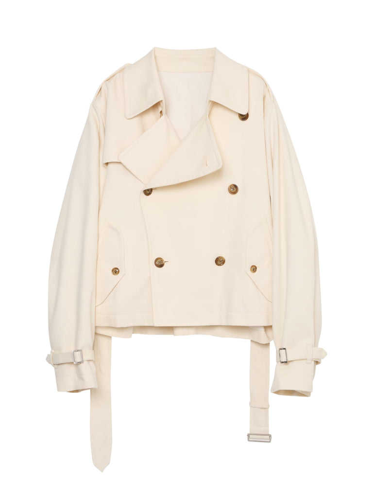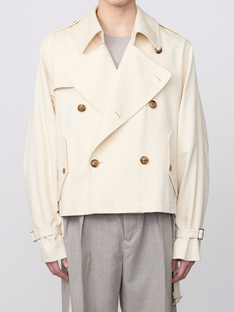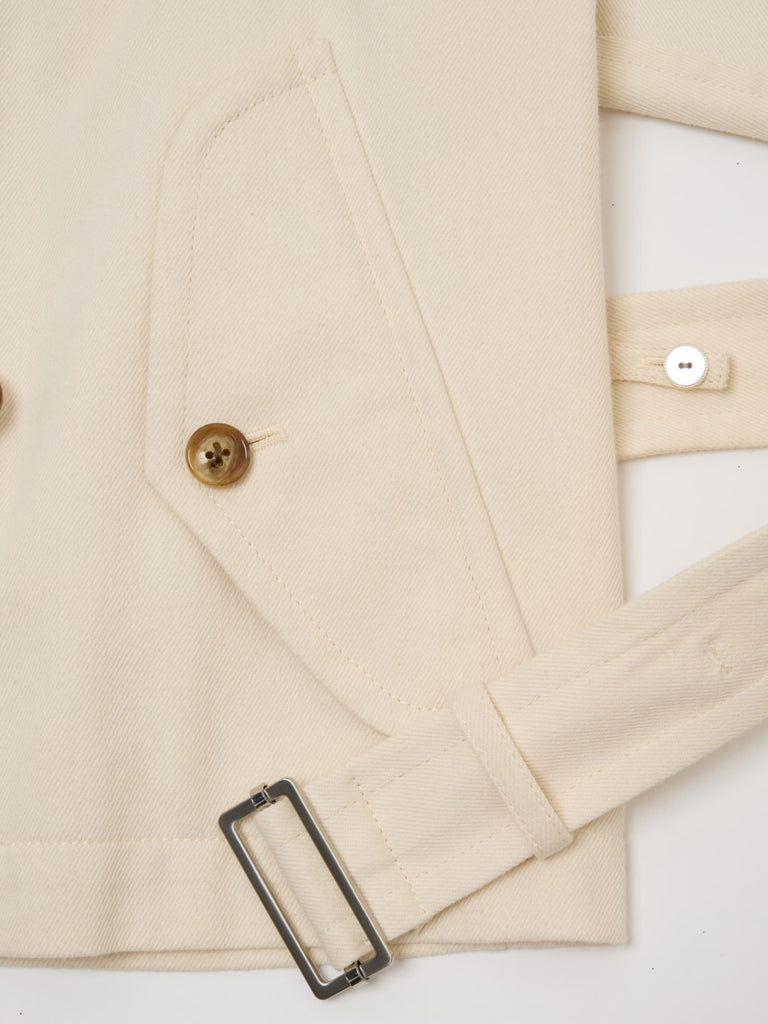 柔らかな風合いのコットンウール素材を使用した、総裏仕立てのショートトレンチコート。