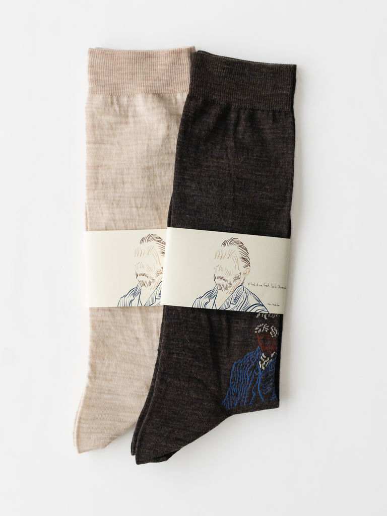 ゴッホの絵をiPadで描いているときにウネウネやシワだけを別レイヤーで描いていたのですが、シワだけを見てもゴッホだと認識できすごく素敵な雰囲気だったのでソックスはシワだけで表現されたゴッホのソックスです。