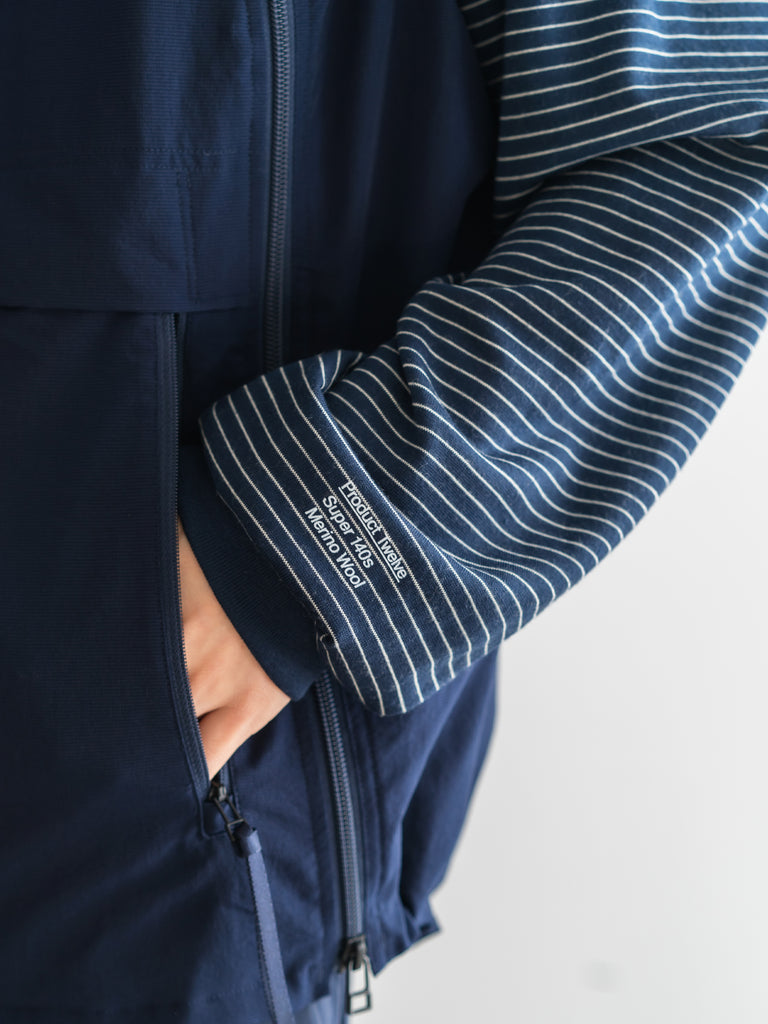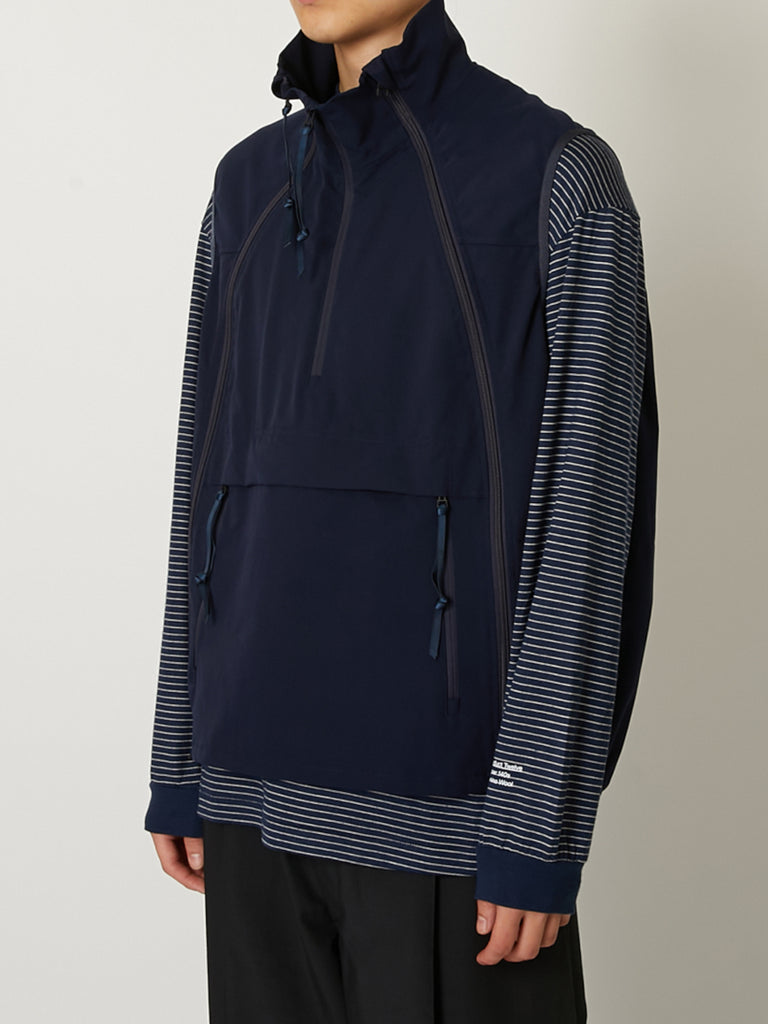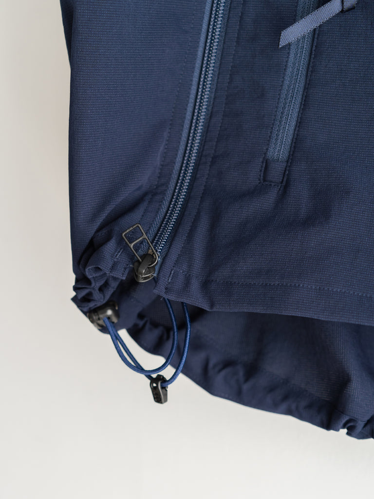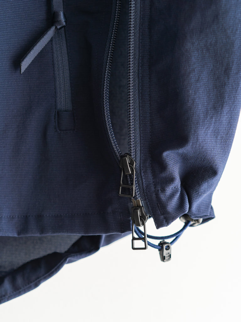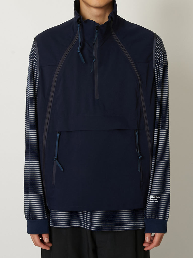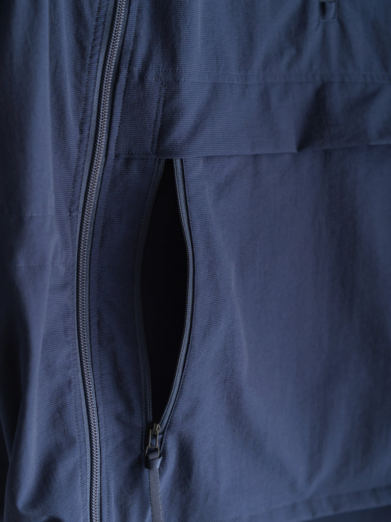 着用しない際は、腹部のポケットにパッカブルできる設計とし、持ち運びやすさにも配慮。