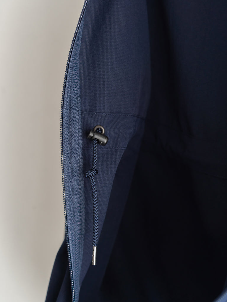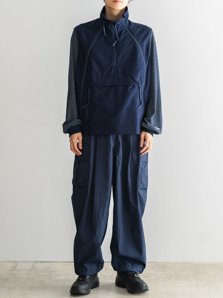 肩線を無くし、様々な人の肩傾斜に合うパターンを考案。裾口のスピンドルにより、機能的なシルエット変化が可能。