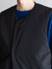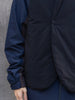 撥水性の高い上質なタフタ生地を使用した保温性の高い中綿入りのベスト。