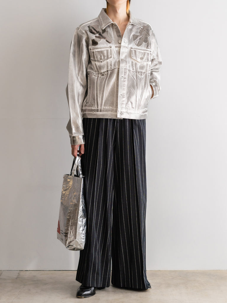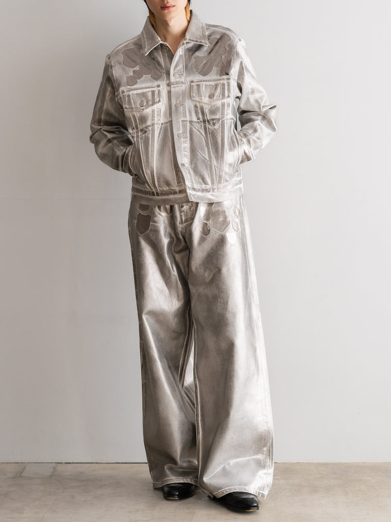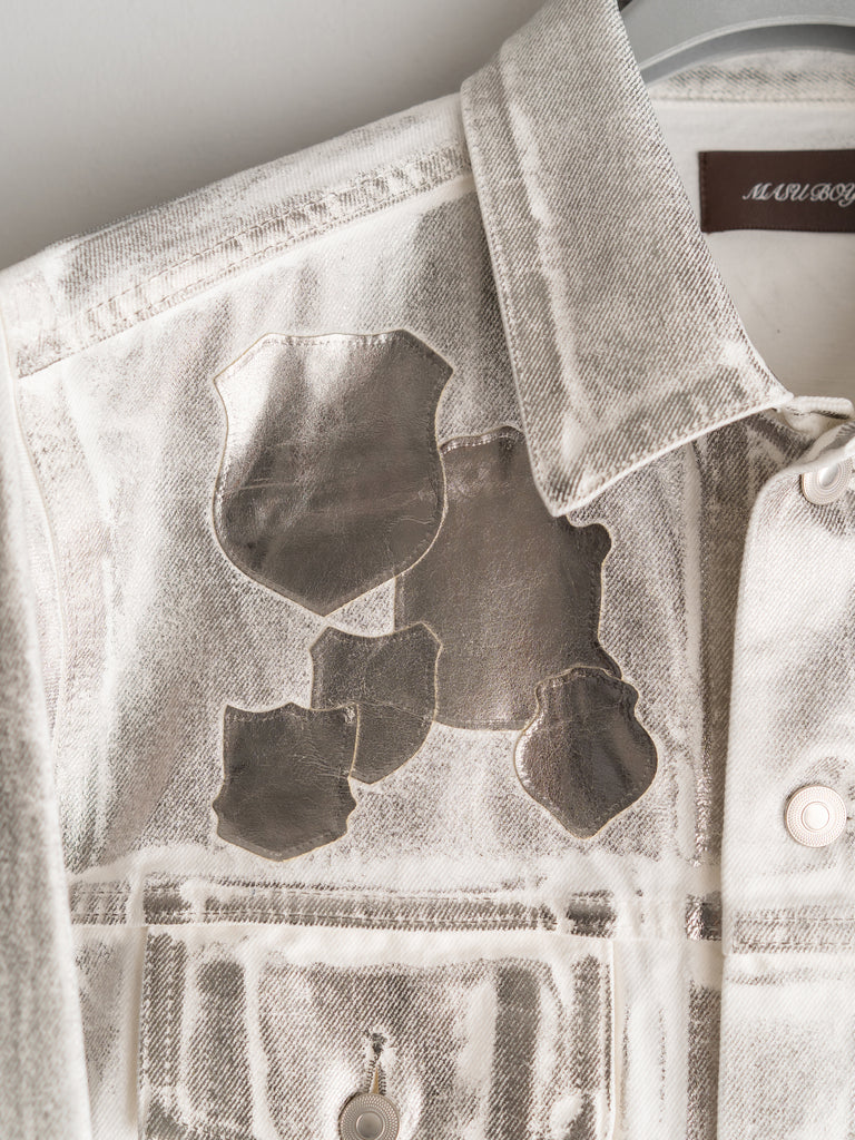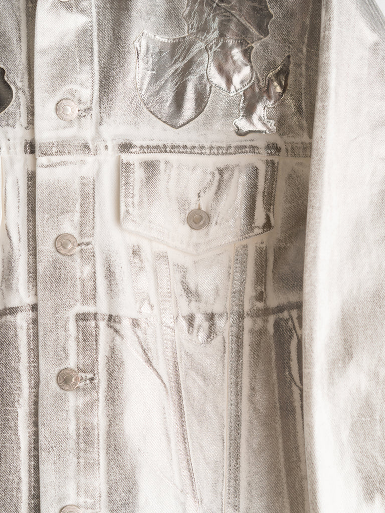 エンブレム(勲章)も含めて全面にシルバーの箔プリントが施されており、これは歴史の形を残しながらも自らの色に塗り替えていくというブランドの姿勢を表現している。