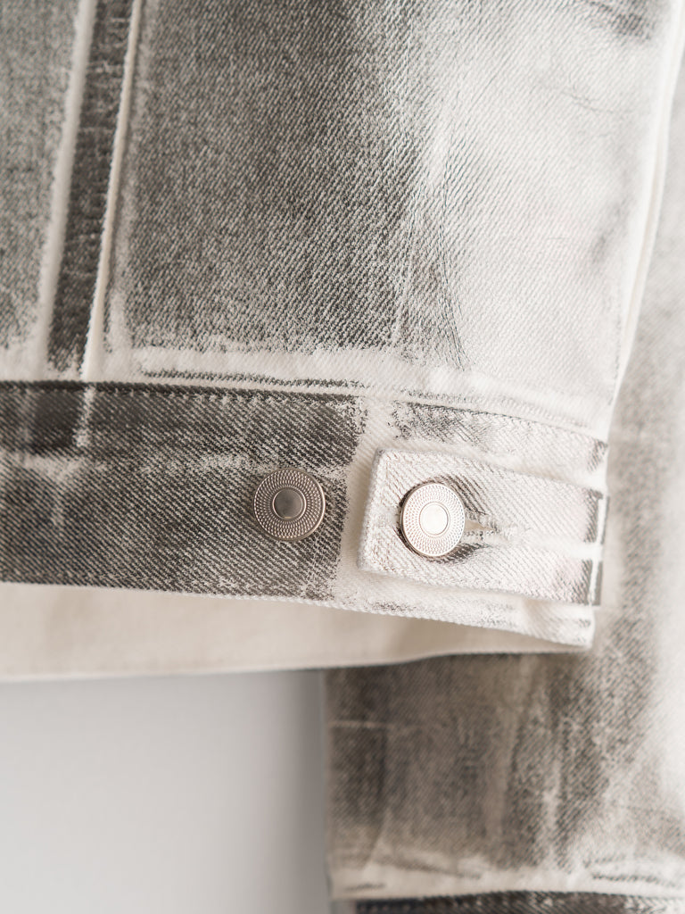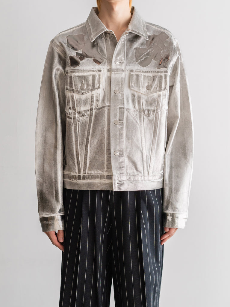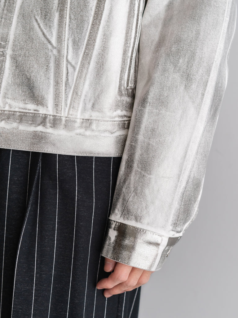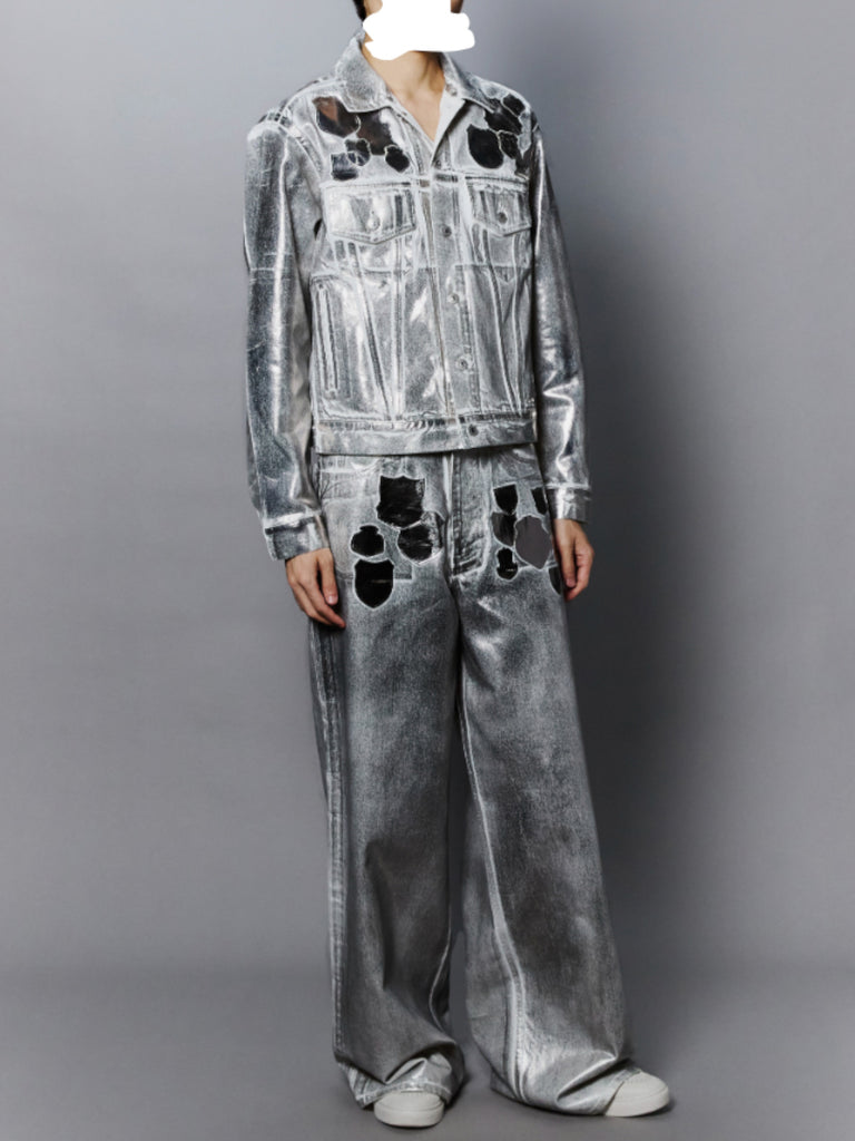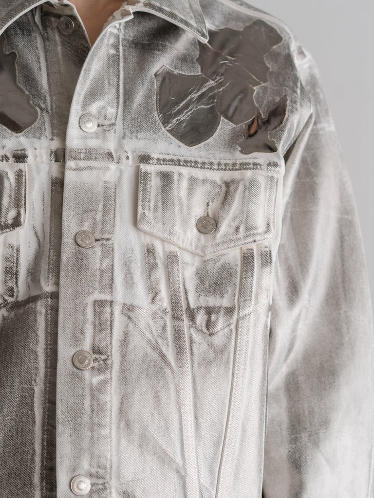 エンブレム(勲章)も含めて全面にシルバーの箔プリントが施されており、これは歴史の形を残しながらも自らの色に塗り替えていくというブランドの姿勢を表現している。