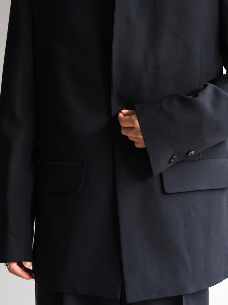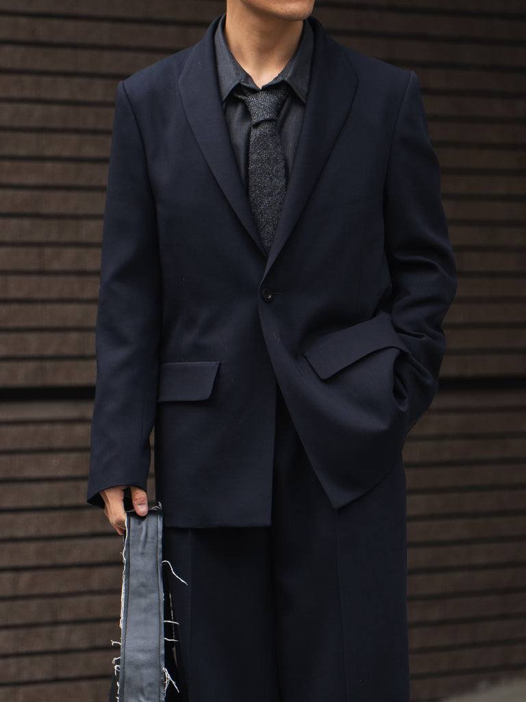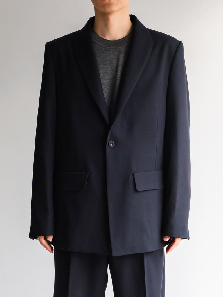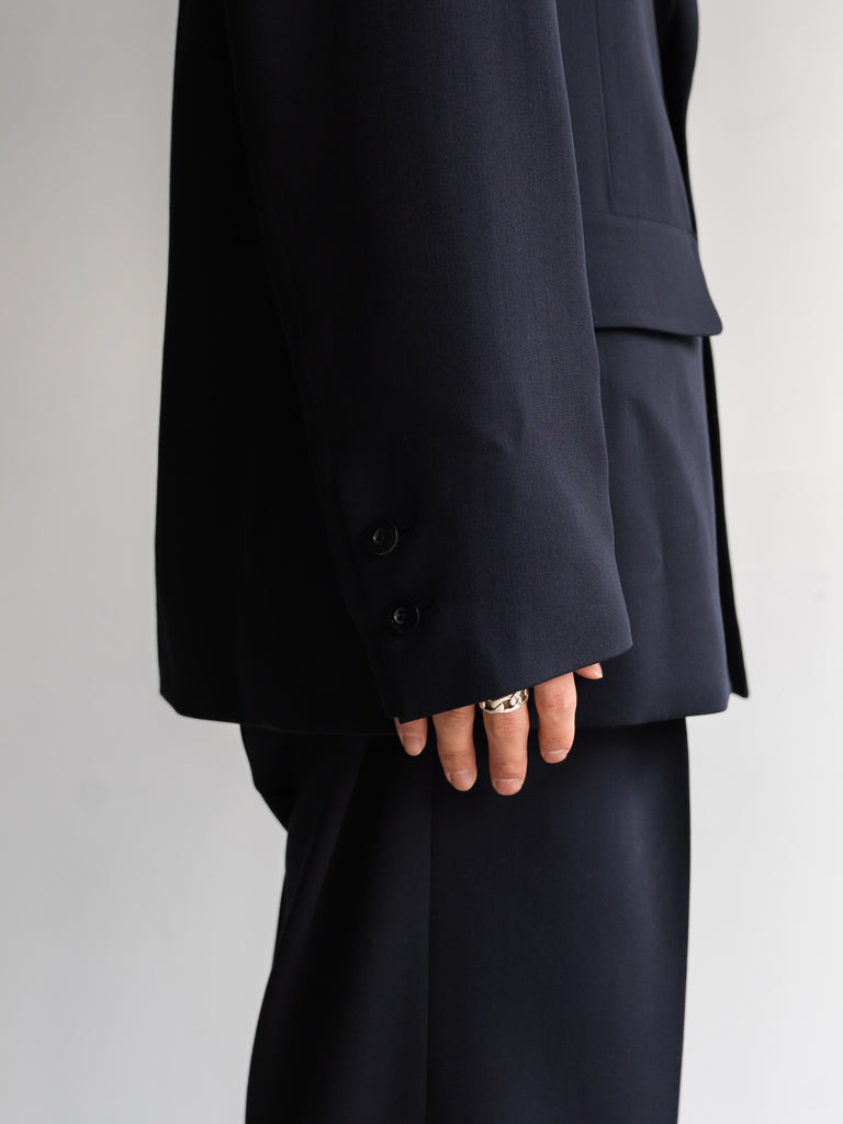 極薄の肩パットを入れて、中の仕立てをしっかりと作り込む事で、通常のジャケットにはない軽い着心地を体感頂ける1着になっています。