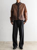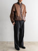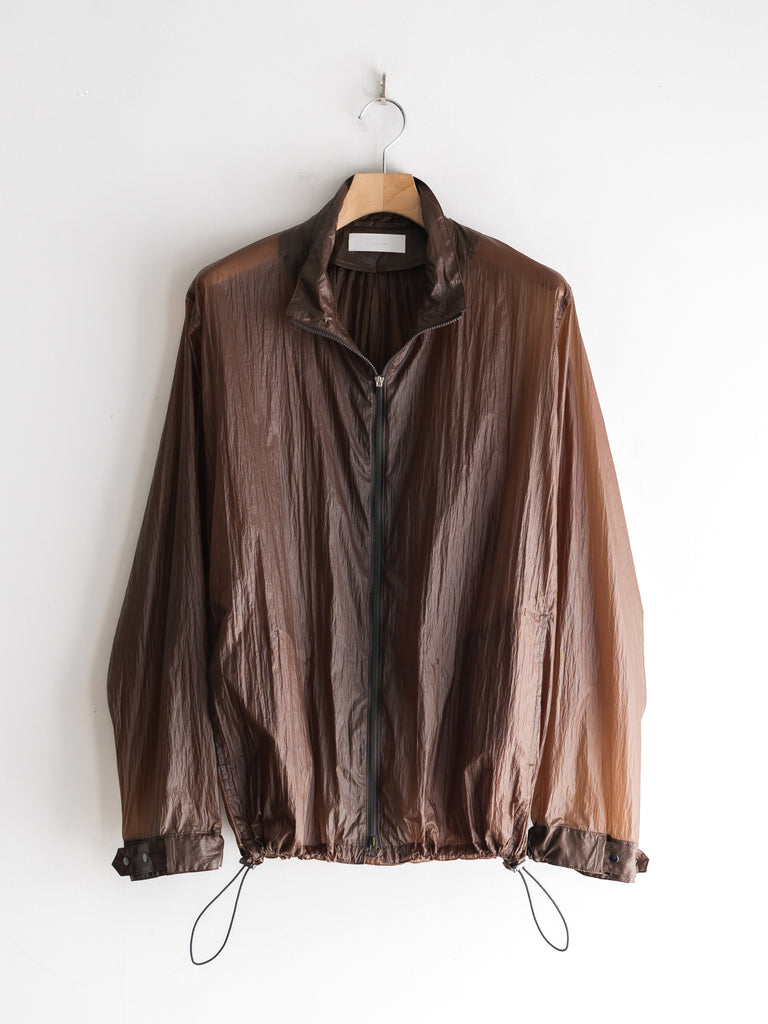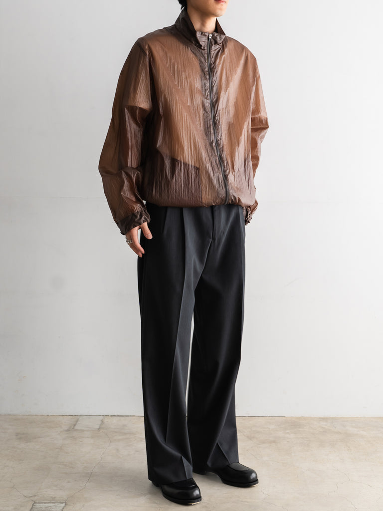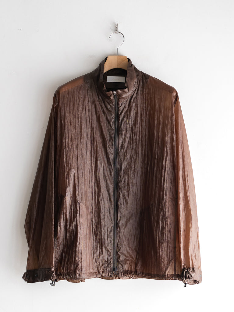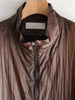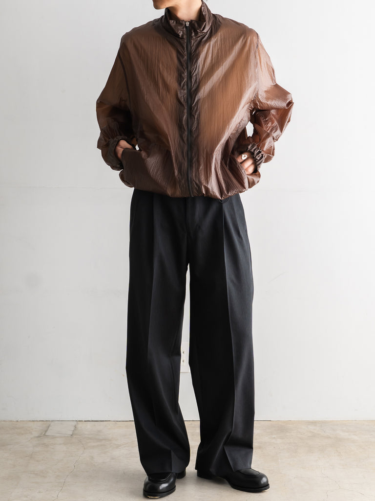 天然ワックスコーティングと撥水加工を施した超軽量ナイロン素材を使用した、一重仕立てのスタンドカラージップブルゾン。