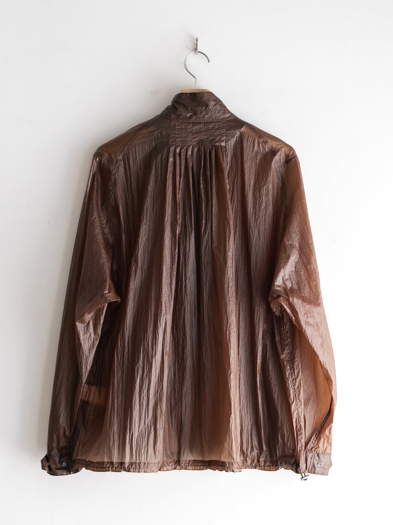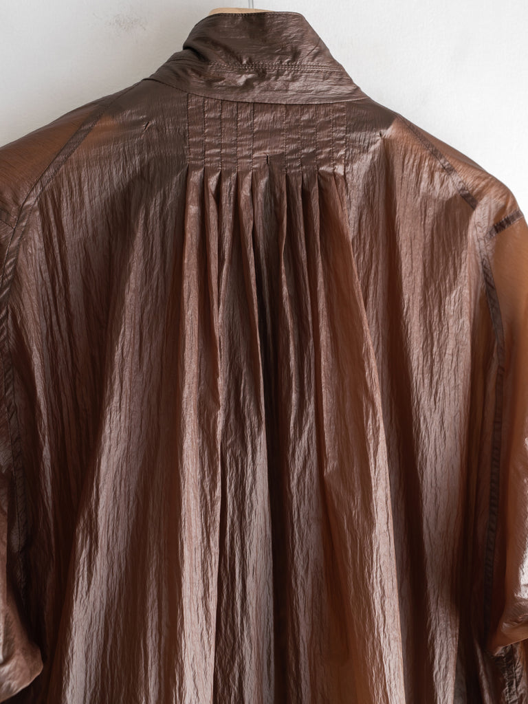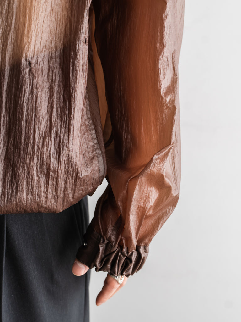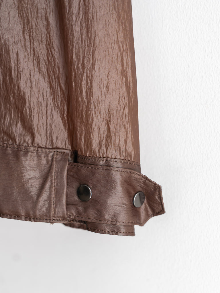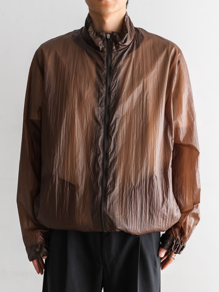 透け感があるほど薄いナイロン素材にコーティング加工を施すことで独特の表情とタッチを生み出しています。