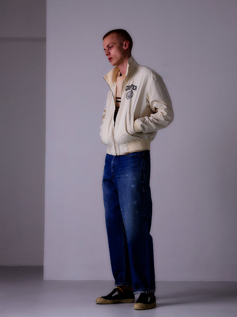 90年代に当時のカルチャーシーンを代表するブリットポップの旗手が着用した、DUFFERの代表的なアイテムであるスウィングトップをリファレンスに、ディテールを忠実に再現しつつもパターンを大幅に修正し、現代のバランスにアップデートを行いました。