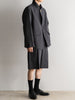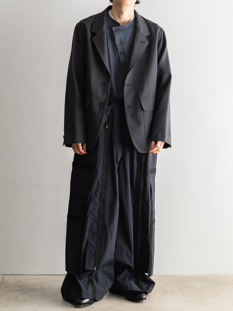 開けても閉めても異なった印象で着用が可能で、衿を立てて着用した際のトグル釦と、フラップ付きのアウトポケットがアクセントになっていて、カジュアルな雰囲気の中にも、品の良さがあるジャケットになっています。