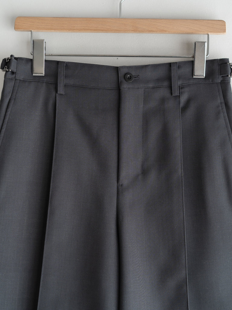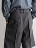 ワイド気味のストレートシルエットで、センタープレスにつまみステッチが入っているので、クリースラインが取れない仕様になっています。