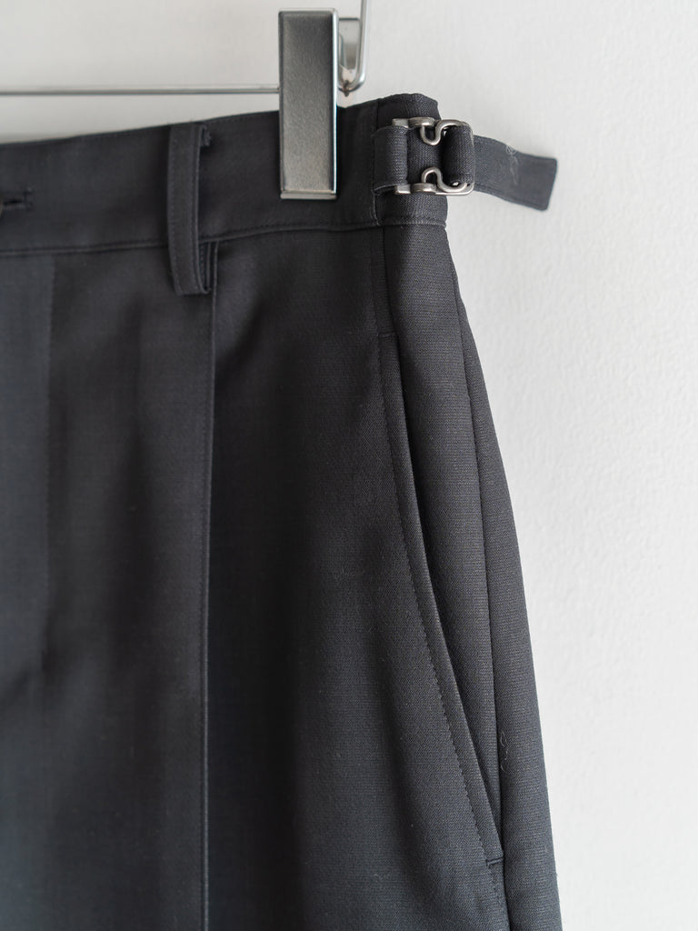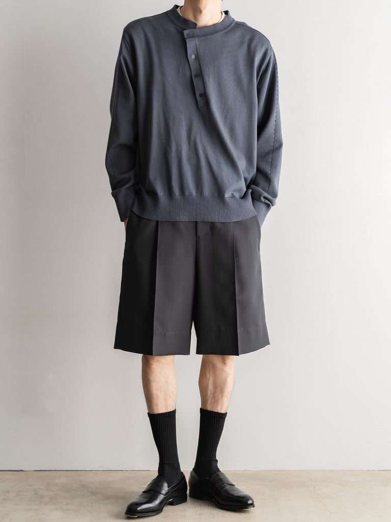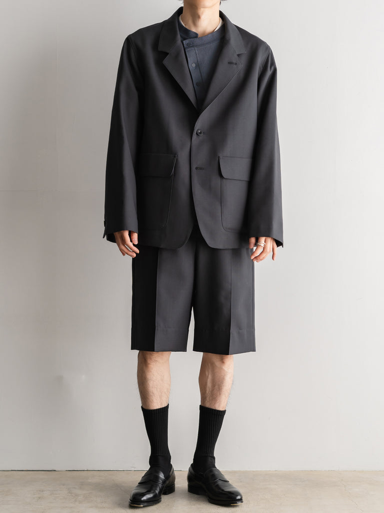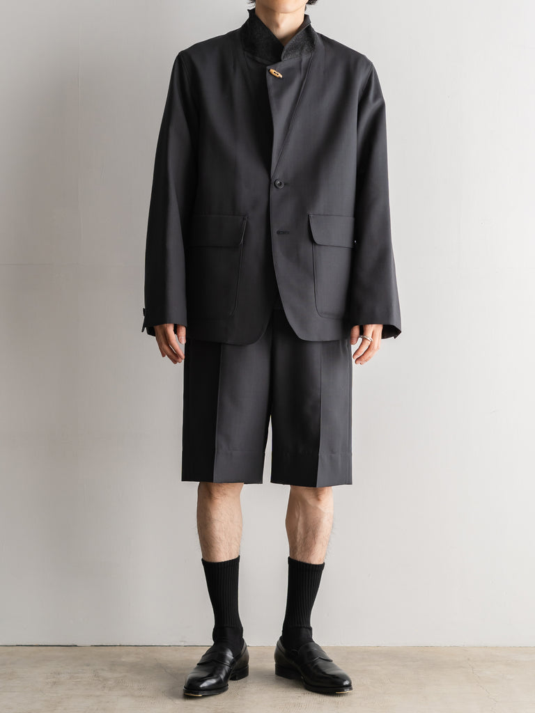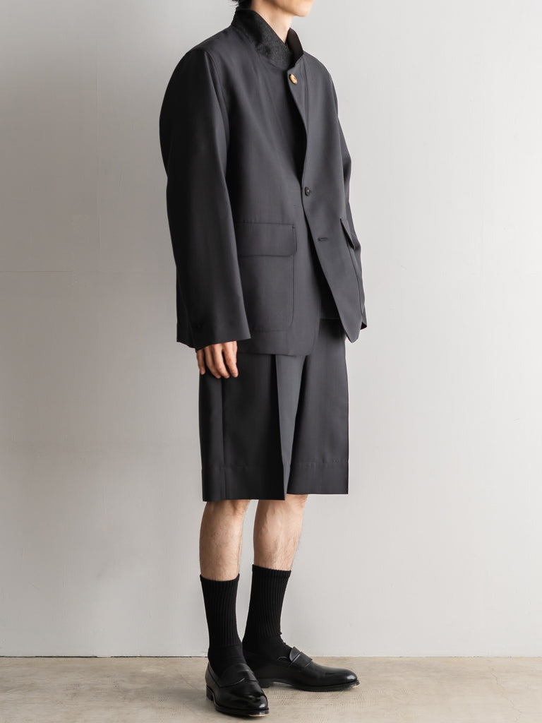 二重織りのサマーウール素材を使用した、裏無しの1タックストレートショーツ 。