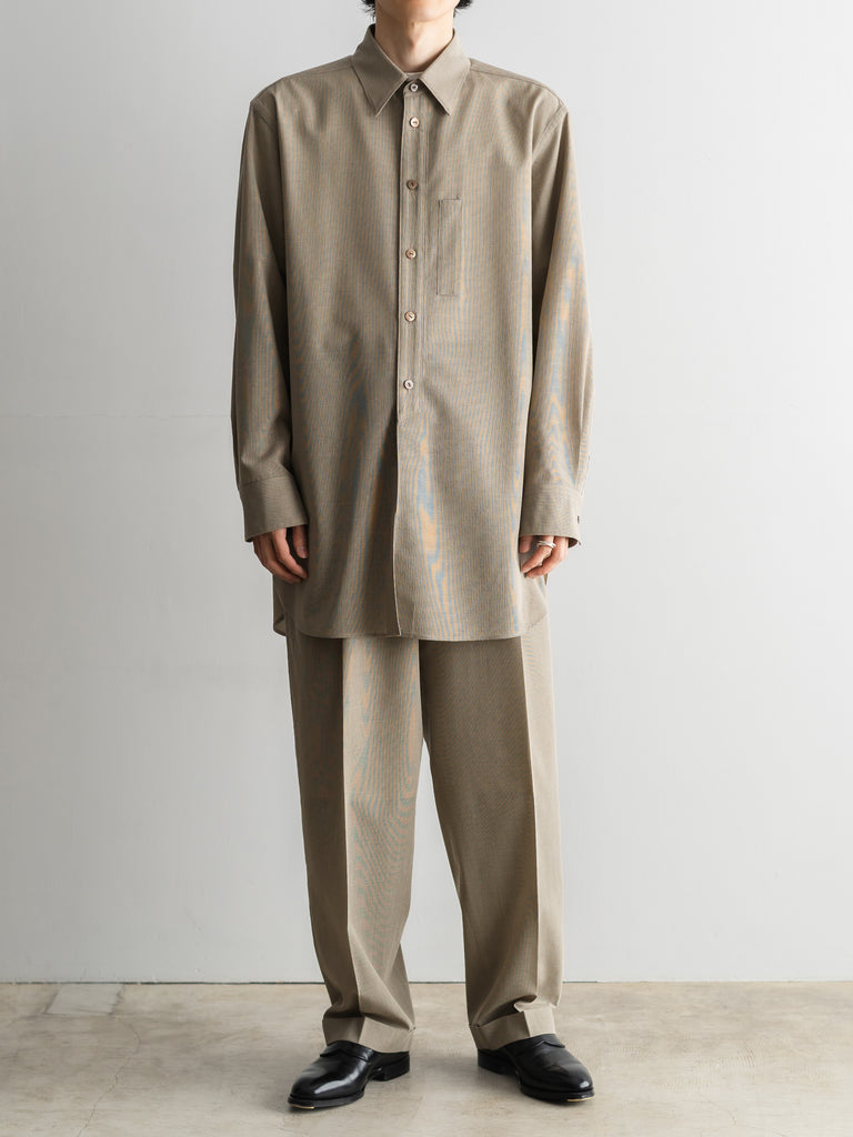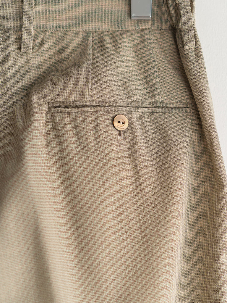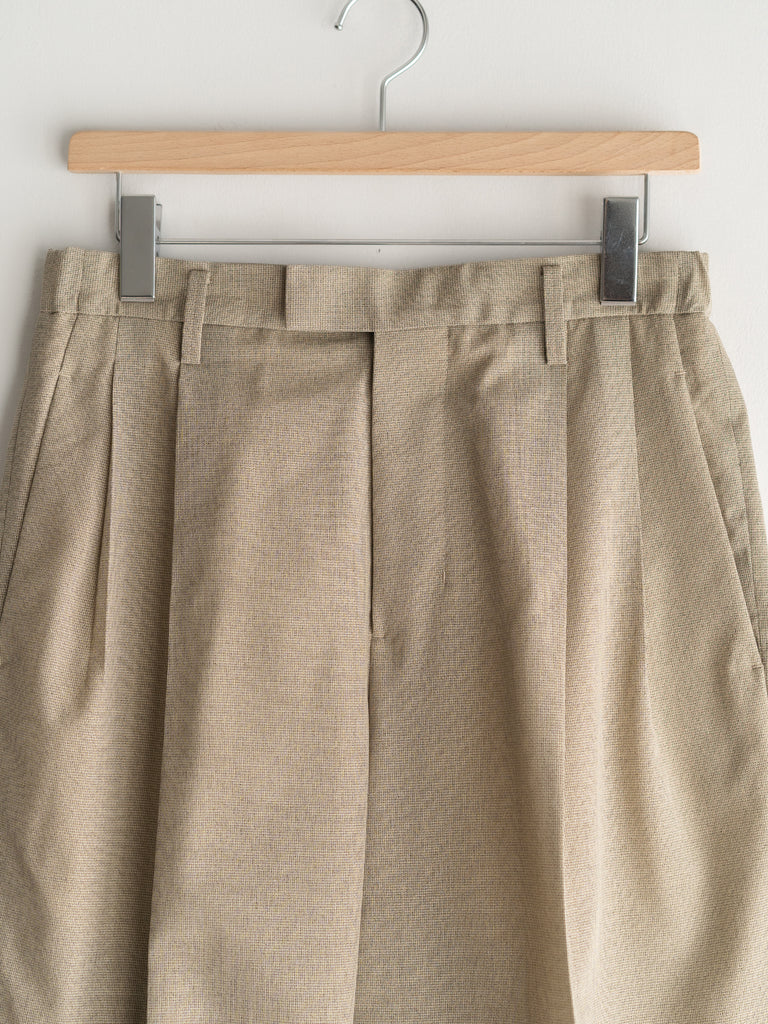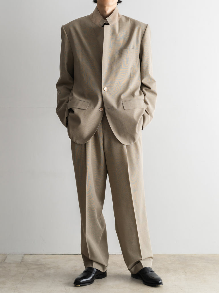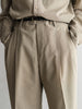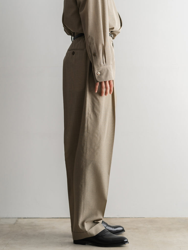 強撚のウールキュプラのクレープ素材を使用した、2タックテーパードトラウザーズ。