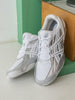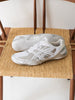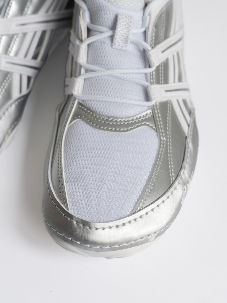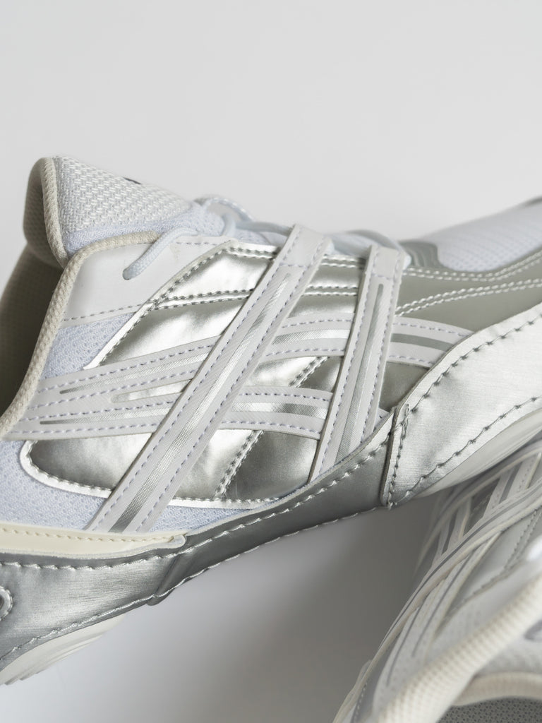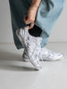 洗練された人工皮革のオーバーレイと、装飾的なステッチディテール、目地の異なるエアメッシュのアンダーレイが特徴です。