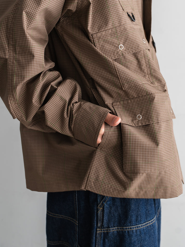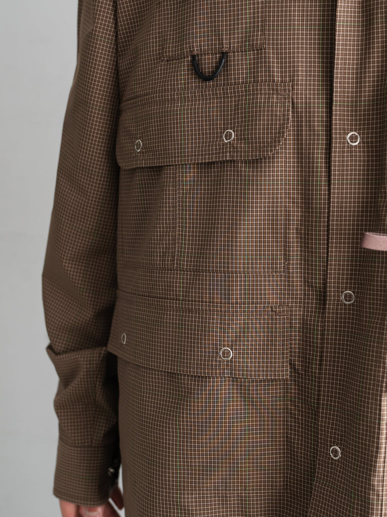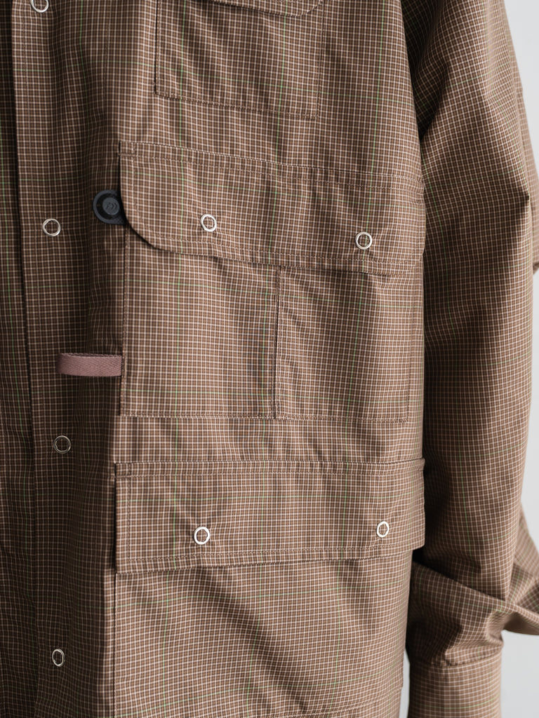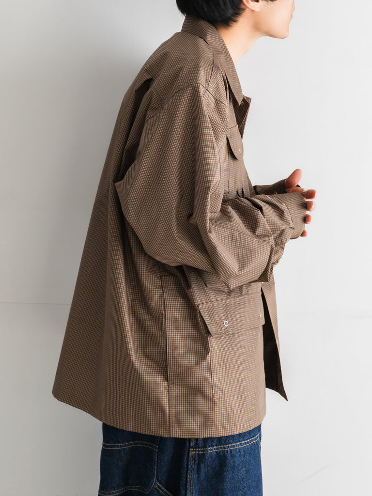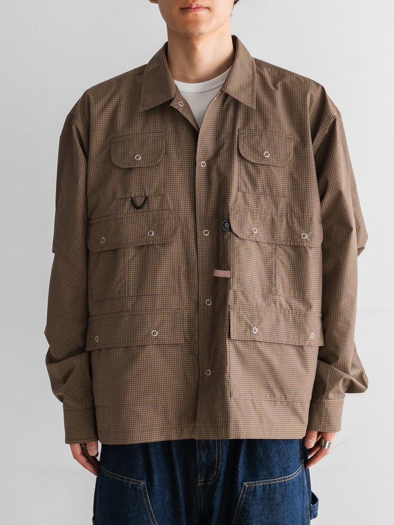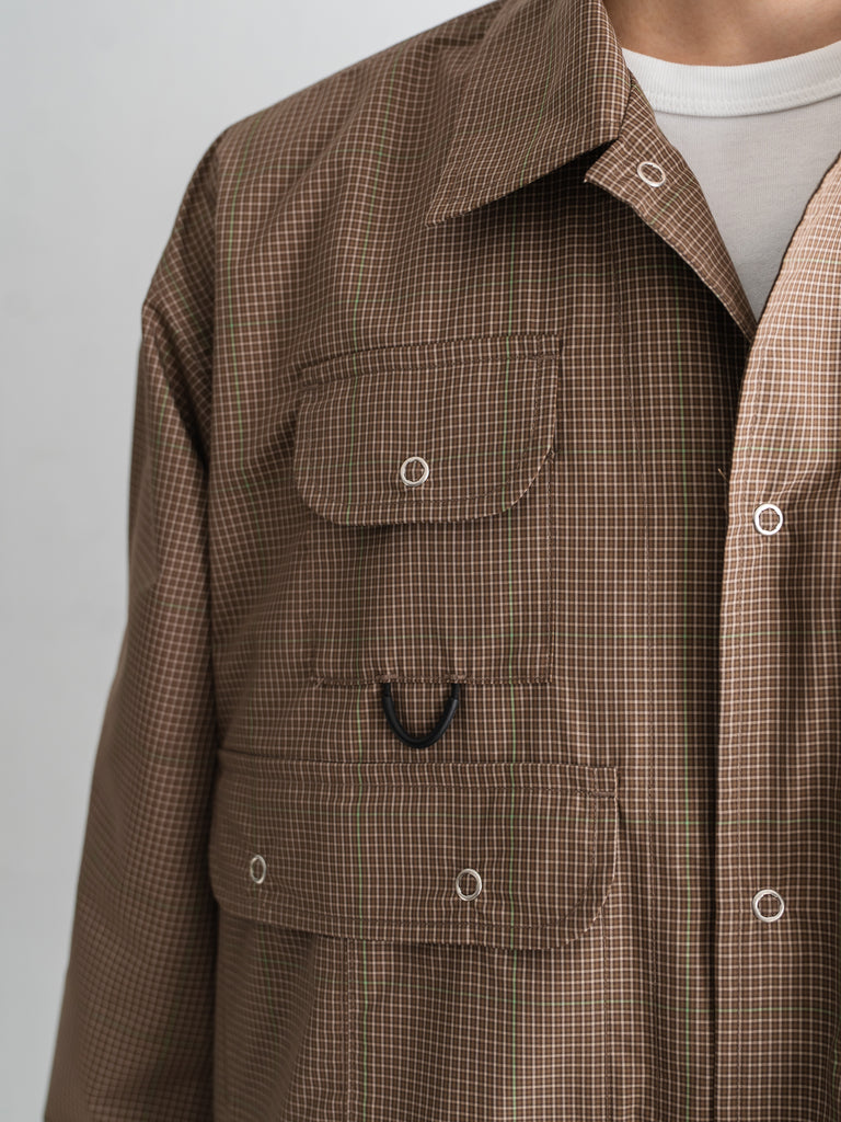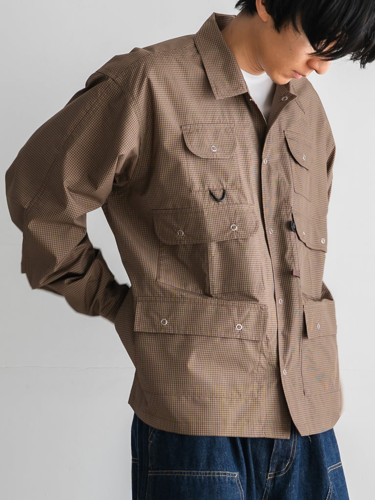 ヴィンテージのフィッシングジャケットをデザインソースに、シャツ素材にて軽量にアップデートいたしました。