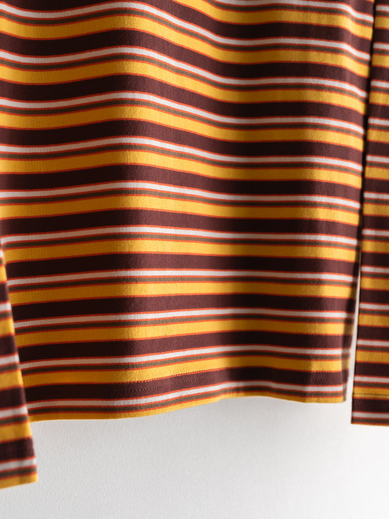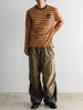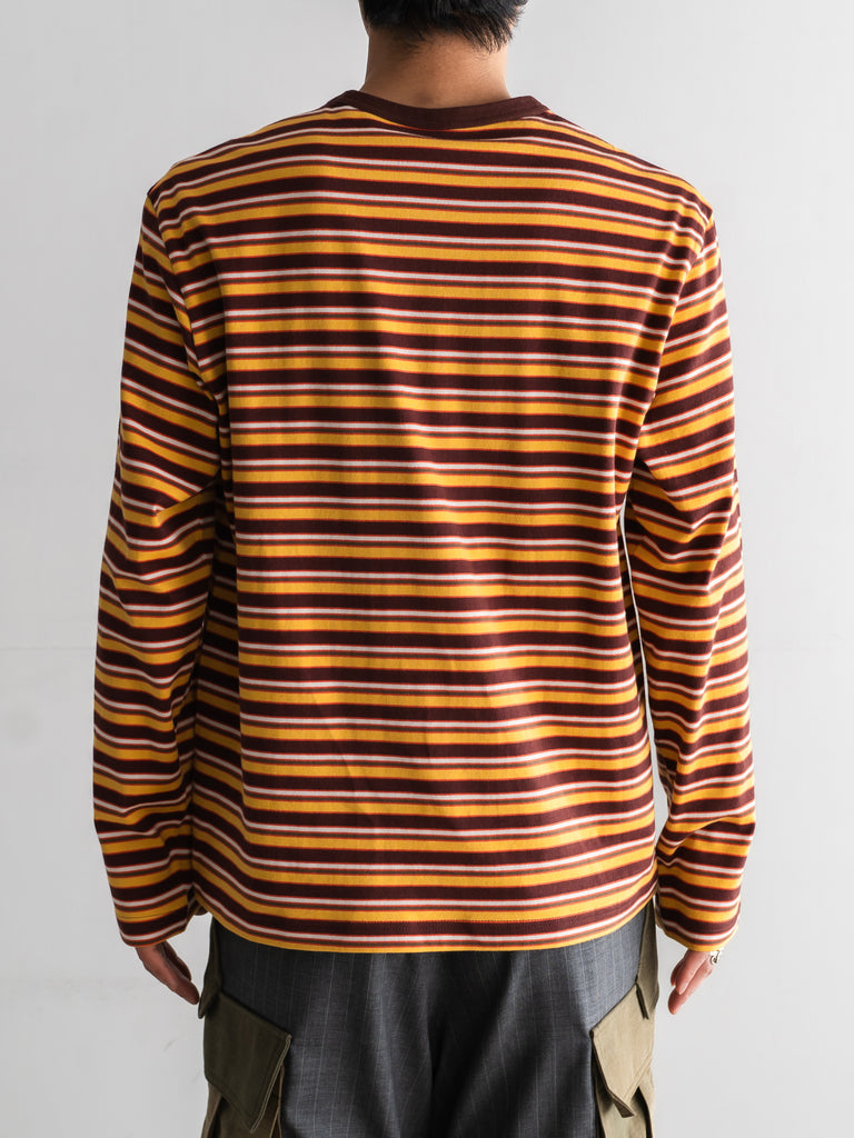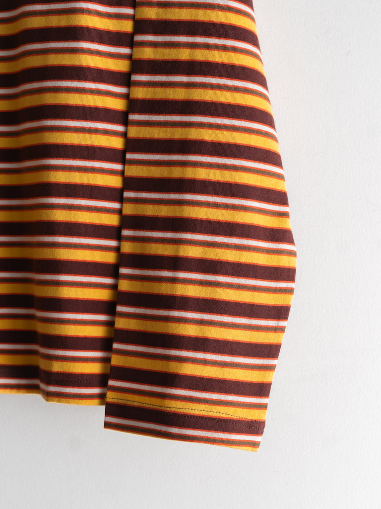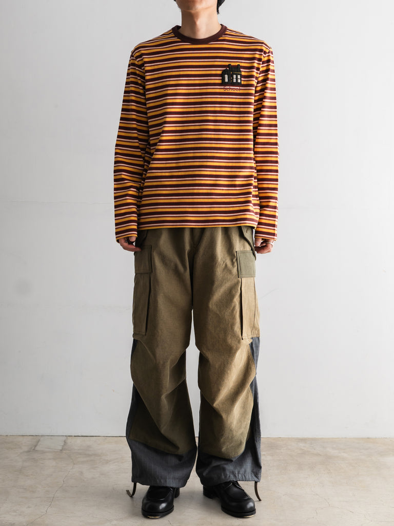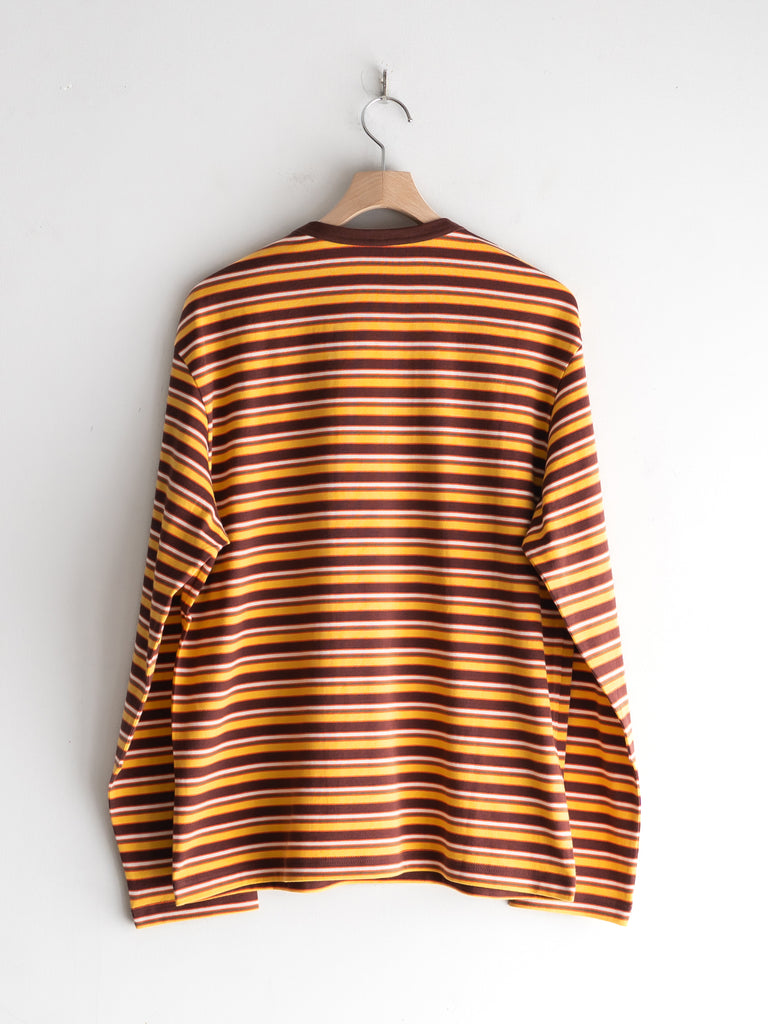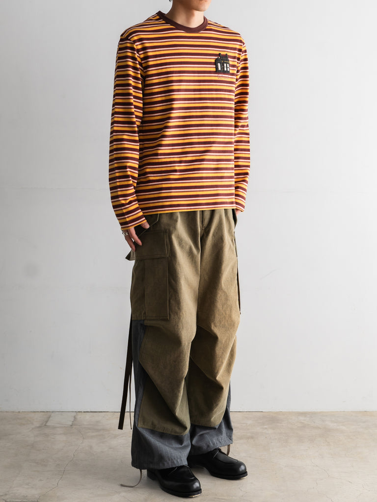 マルチピッチのボーダー柄が印象的な、KHOKIのロングスリーブTシャツ。