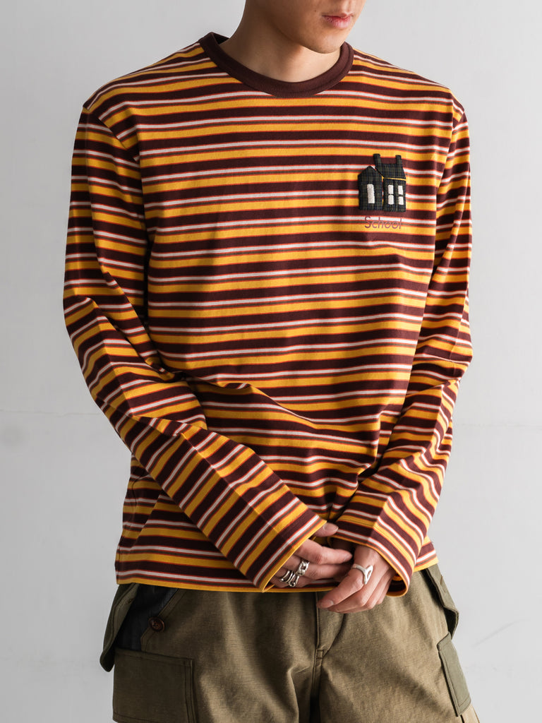 【1.25 Sun. 20:00- IN STOCK】KHOKI - Hand-Embroidered Stripe Long Sleeve T-Shirt