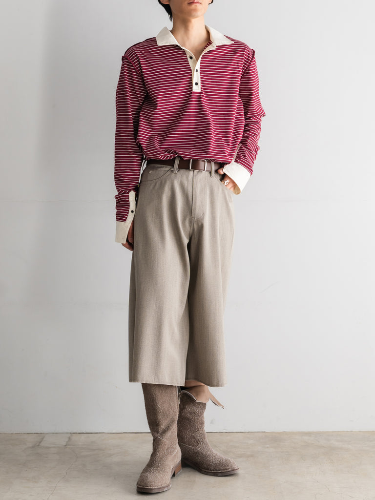 キャンバス生地のワイドハーフパンツ。