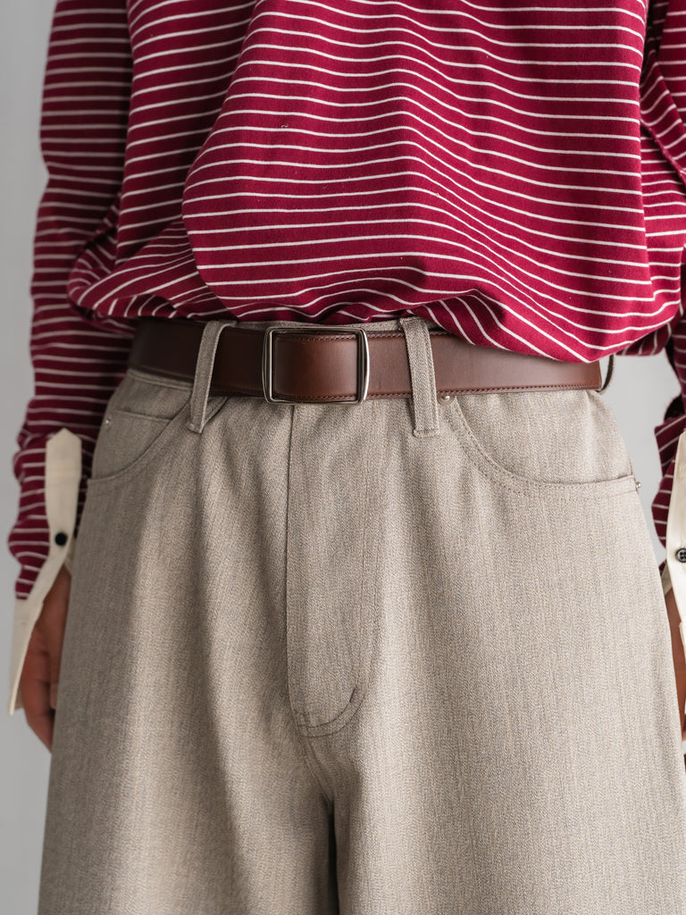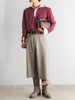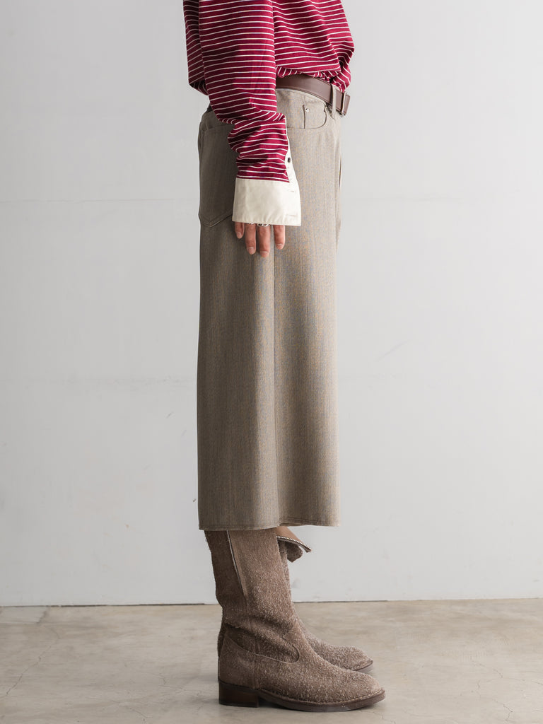 ゆったりとした裾幅と、膝を覆うニーレングス。
