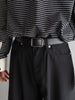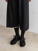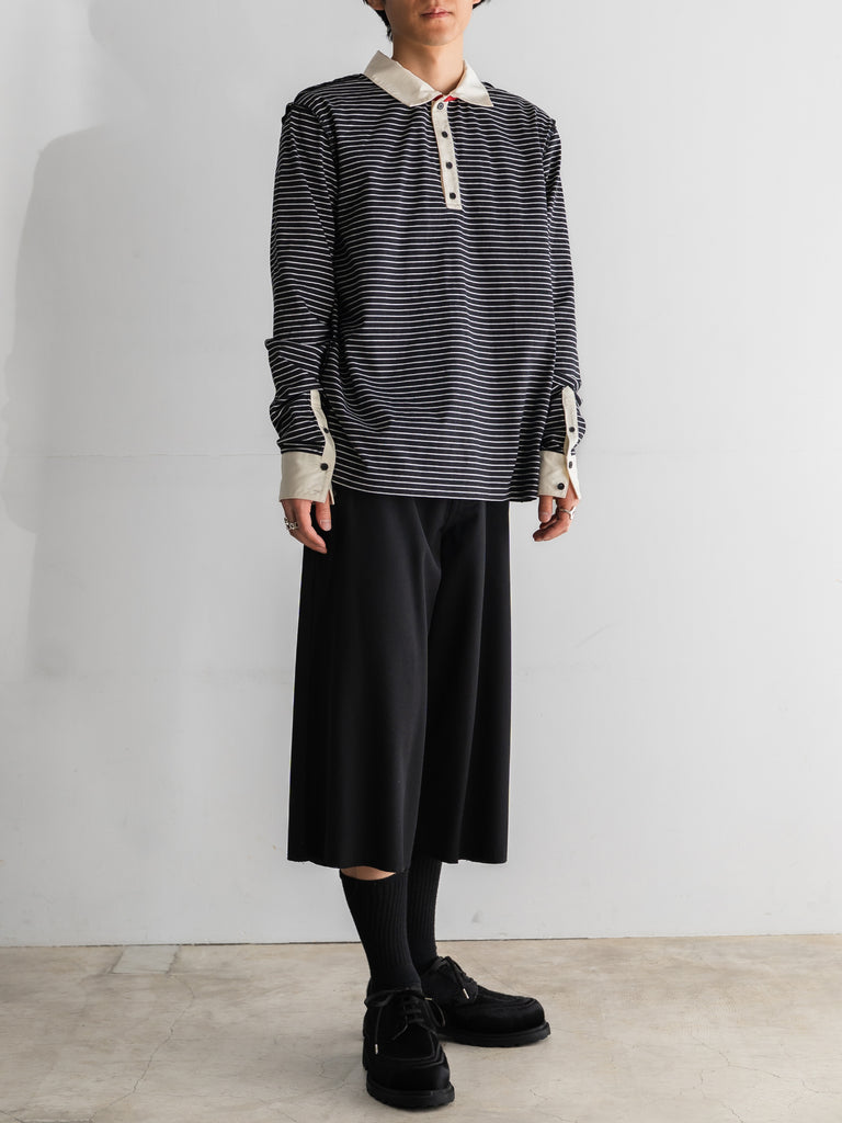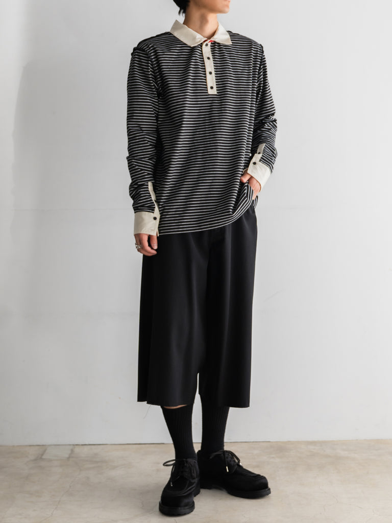 ゆったりとした裾幅と、膝を覆うニーレングス。