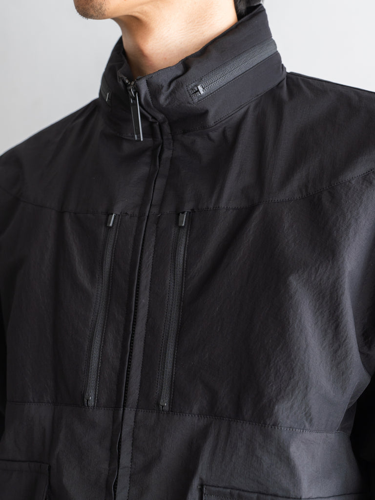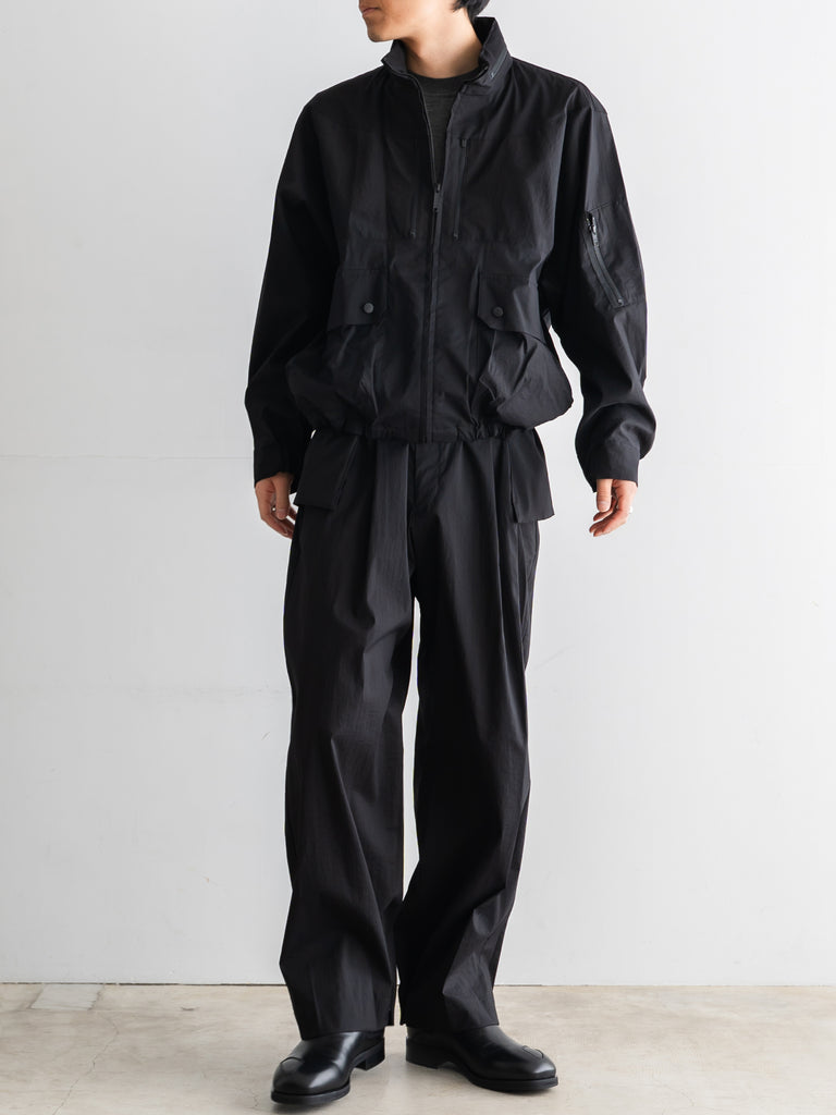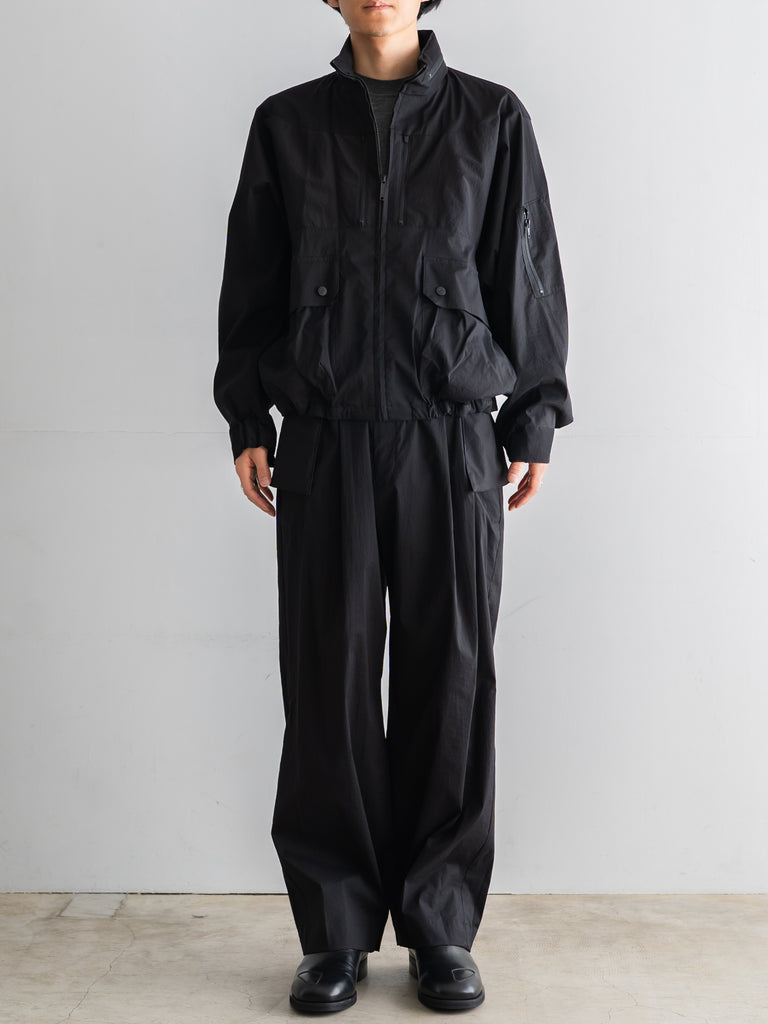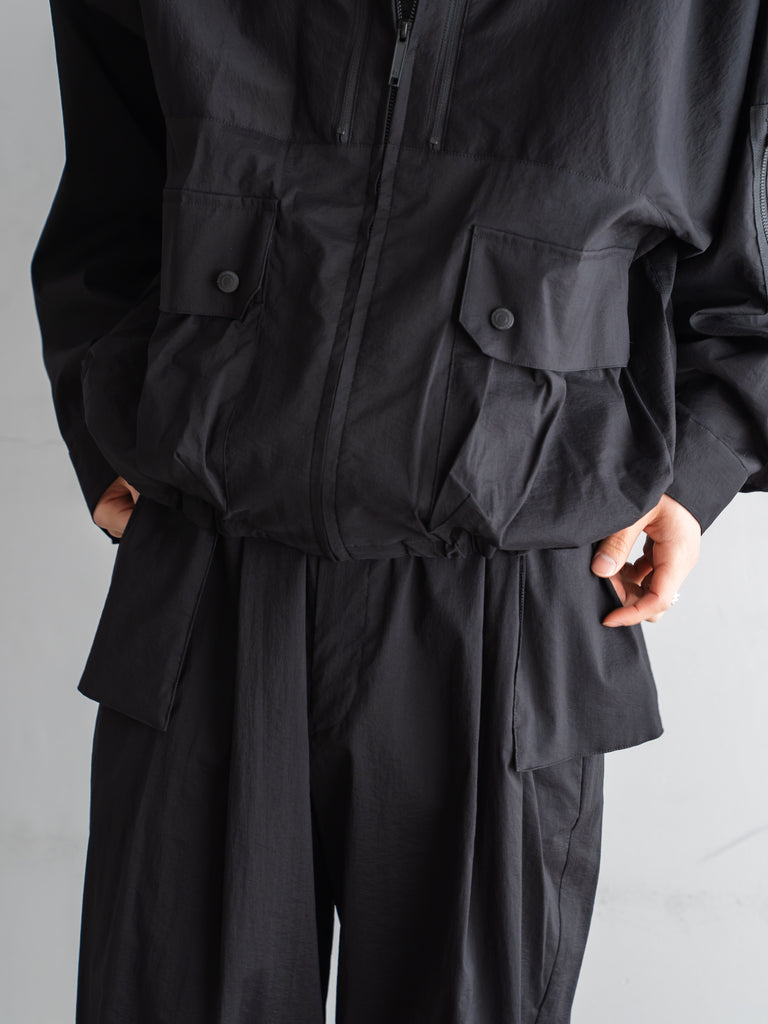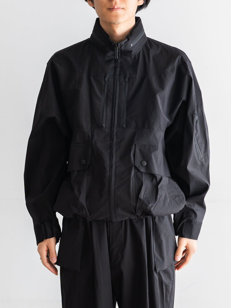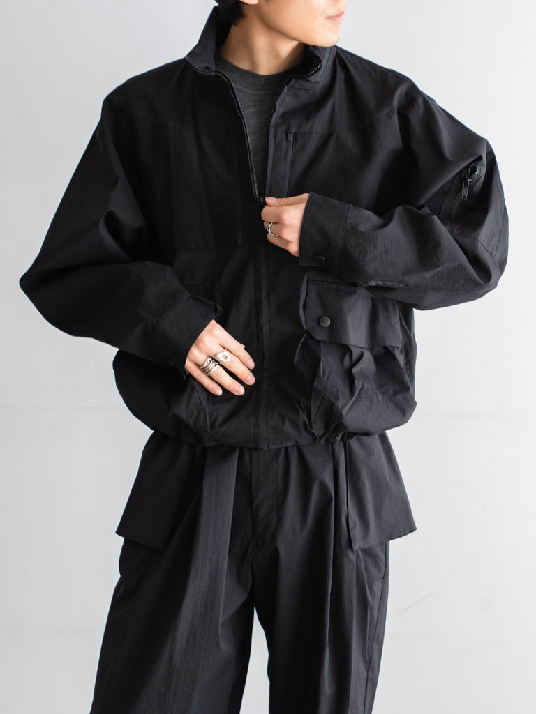 ミリタリーやテックウェアの要素を取り入れた、機能的でデザイン性の高いブルゾンとなっている。