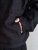 小雨時の着用を想定したウエアらしく、チンスト付きの衿や背中の高めのヨーク、袖のアジャスターといった代表的な仕様に始まり、ポケット周りや前立て部分に通された極細のコードといったディテールも再現しています。