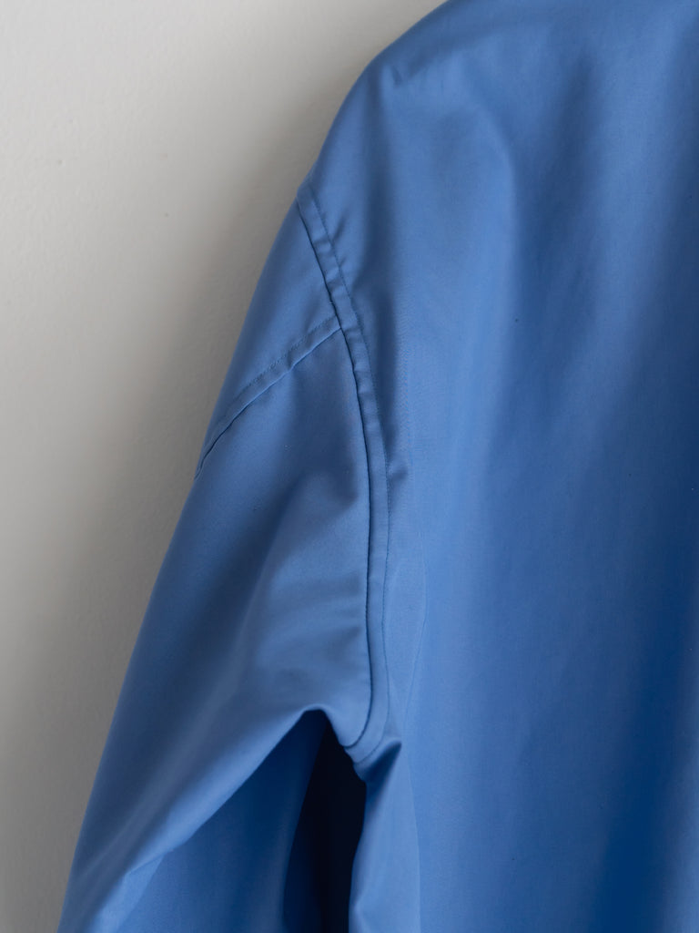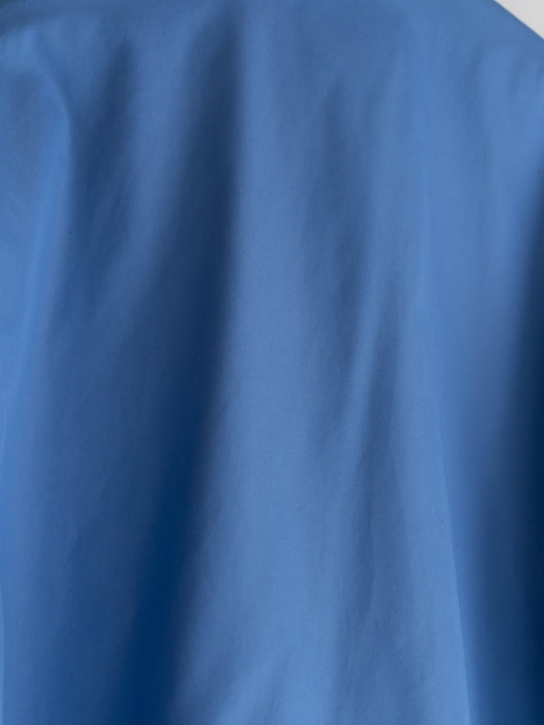 通常のブロードよりもやや打ち込み本数を増やすことで、毛羽が少なく上品な光沢感があり、薄手ながらも程よいハリ感がでるように仕上げています。 製品で洗いをかけシワ感やパッカリングを出しています。