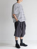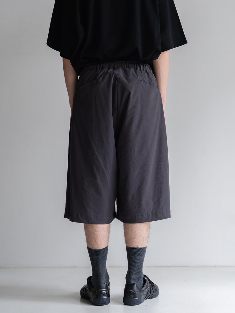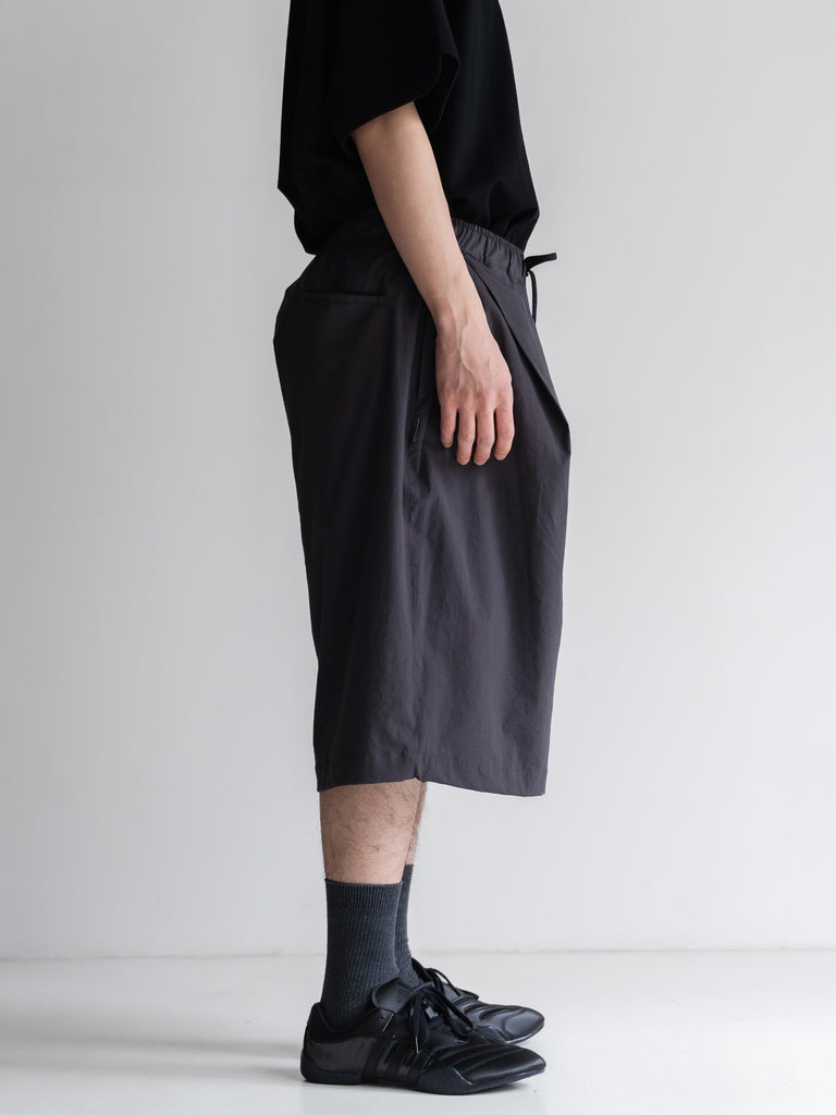 深めのタック入りの膝下丈の新型ロングバギーショーツ。