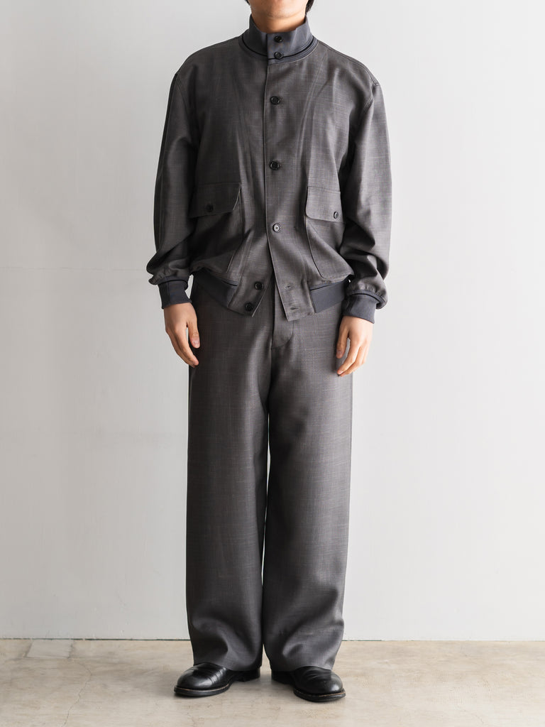 INTÉRIM - VIRGIN WOOL SILK MOHAIR SUITING MIL BAGGY TROUSER【LAST 1】