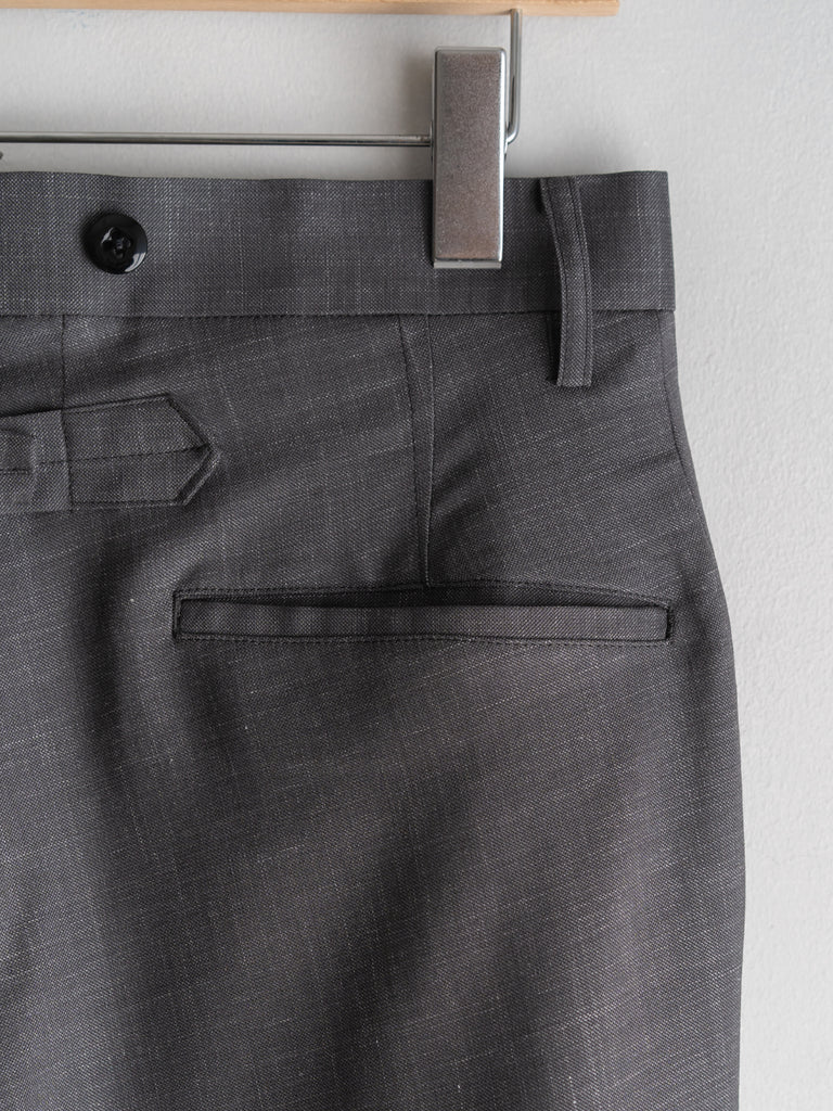1940年代の米軍フィールドトラウザーズのボリュームのあるフォルムをモチーフにしつつ、ドレスパンツとの共存を目指して製作した一本。