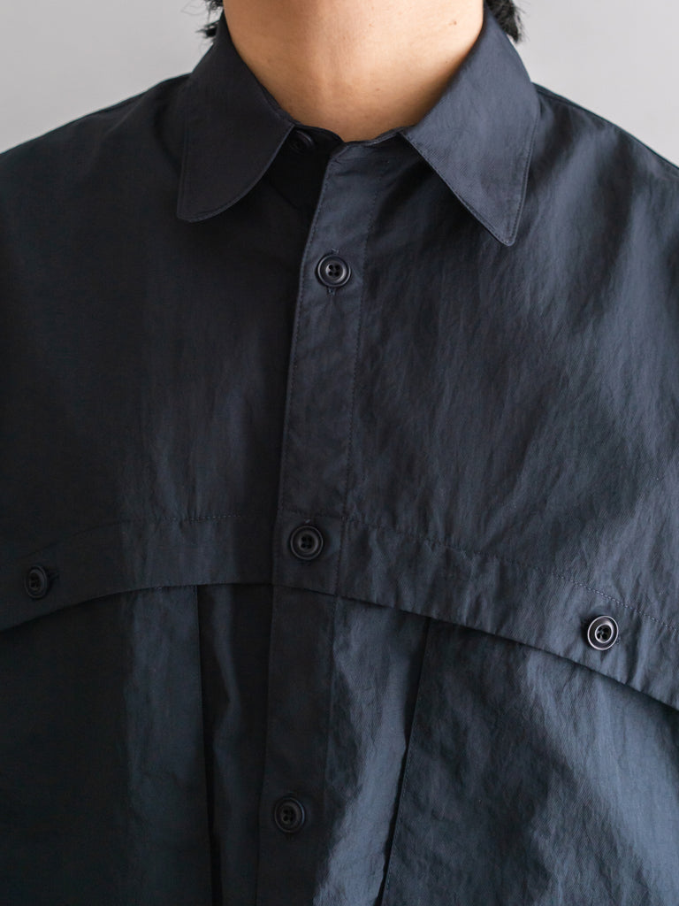 オーバーサイズの3/4袖のクリンクルナイロンシャツです。