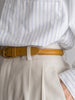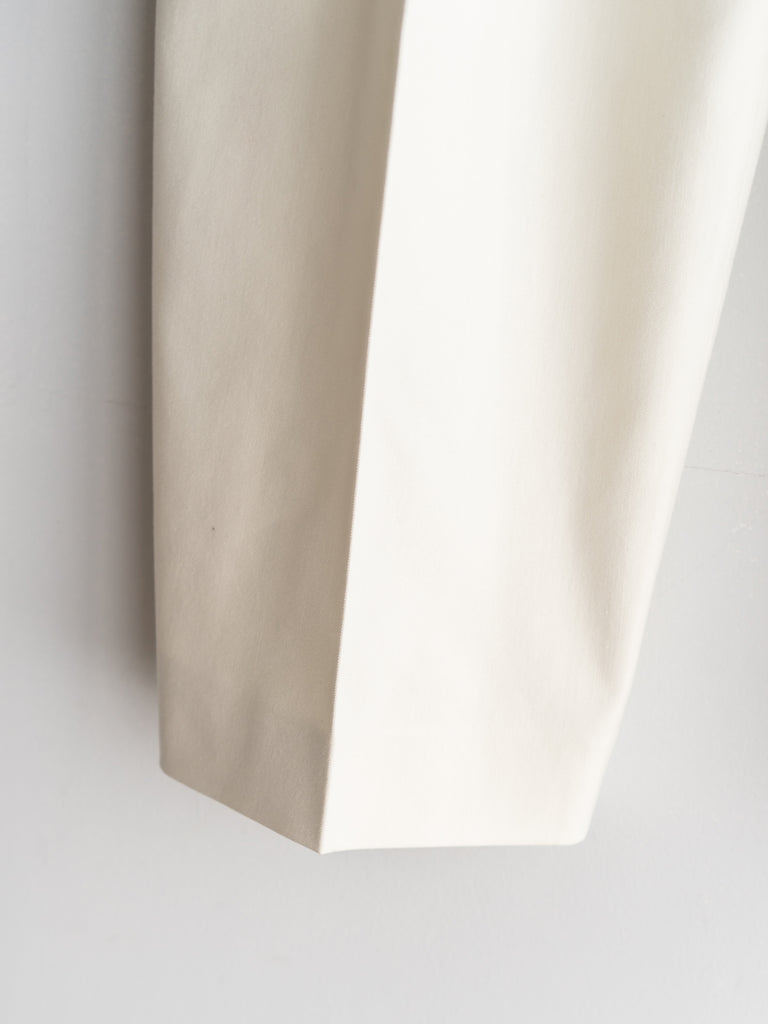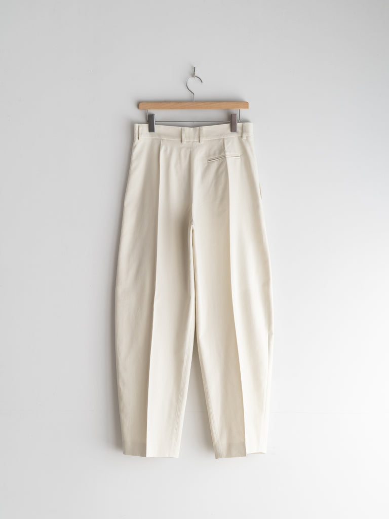 シワにならない程よいハリと厚みのある生地は足元に向かって緩やかにテーパードされ、美しいフォルムが生まれます。