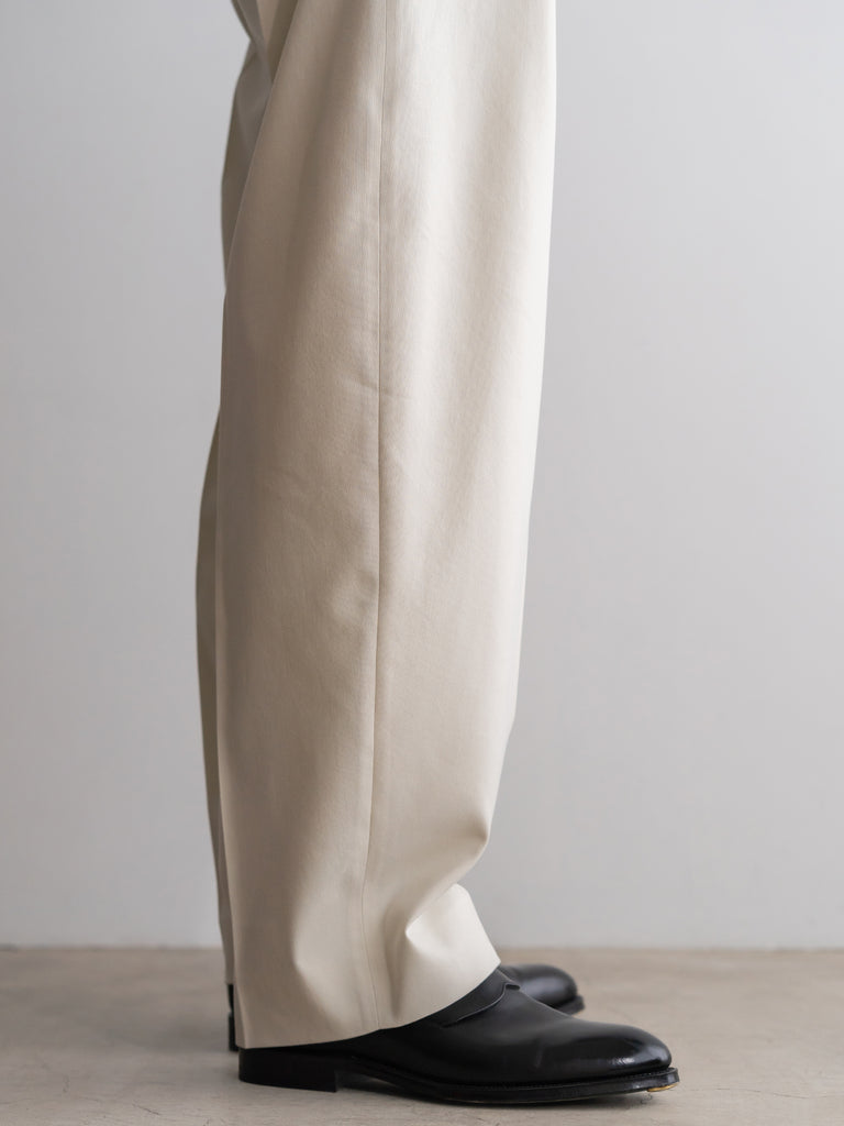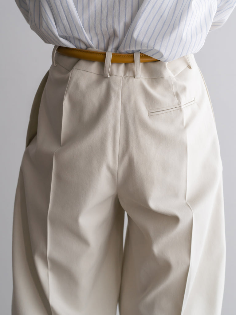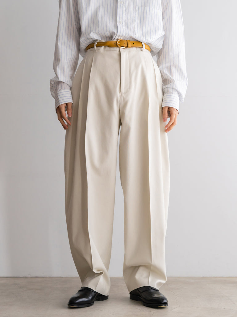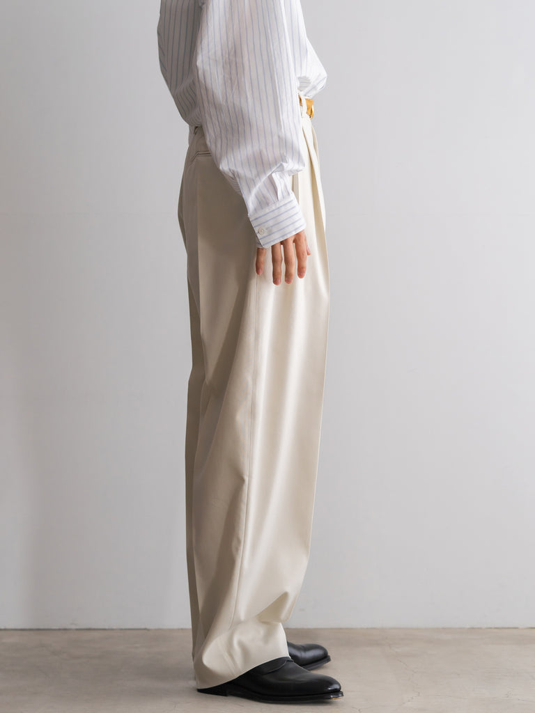 CRISTASEYA別注の最高級イタリアンコットンシルク生地を使用したタックワイドパンツ。