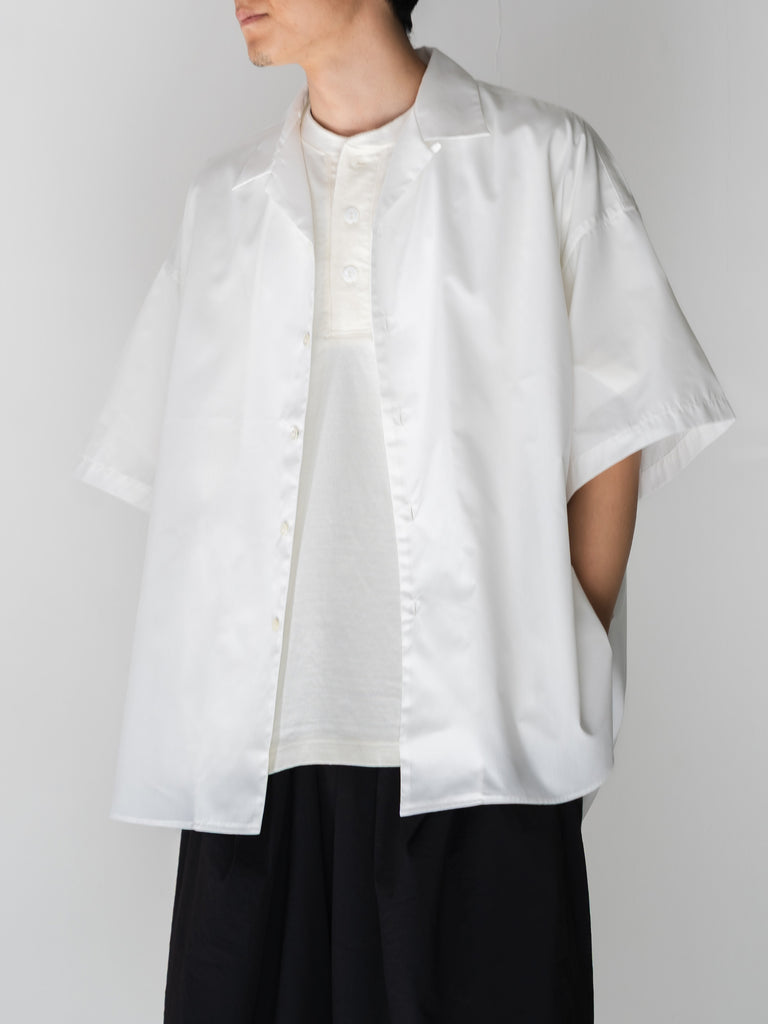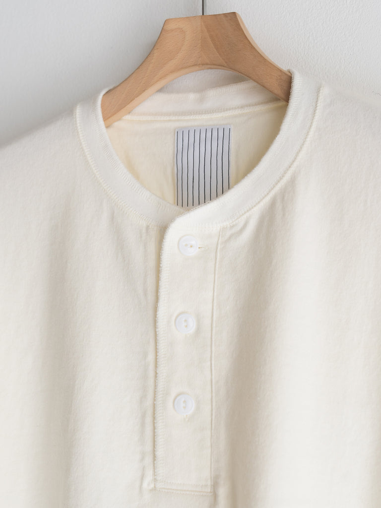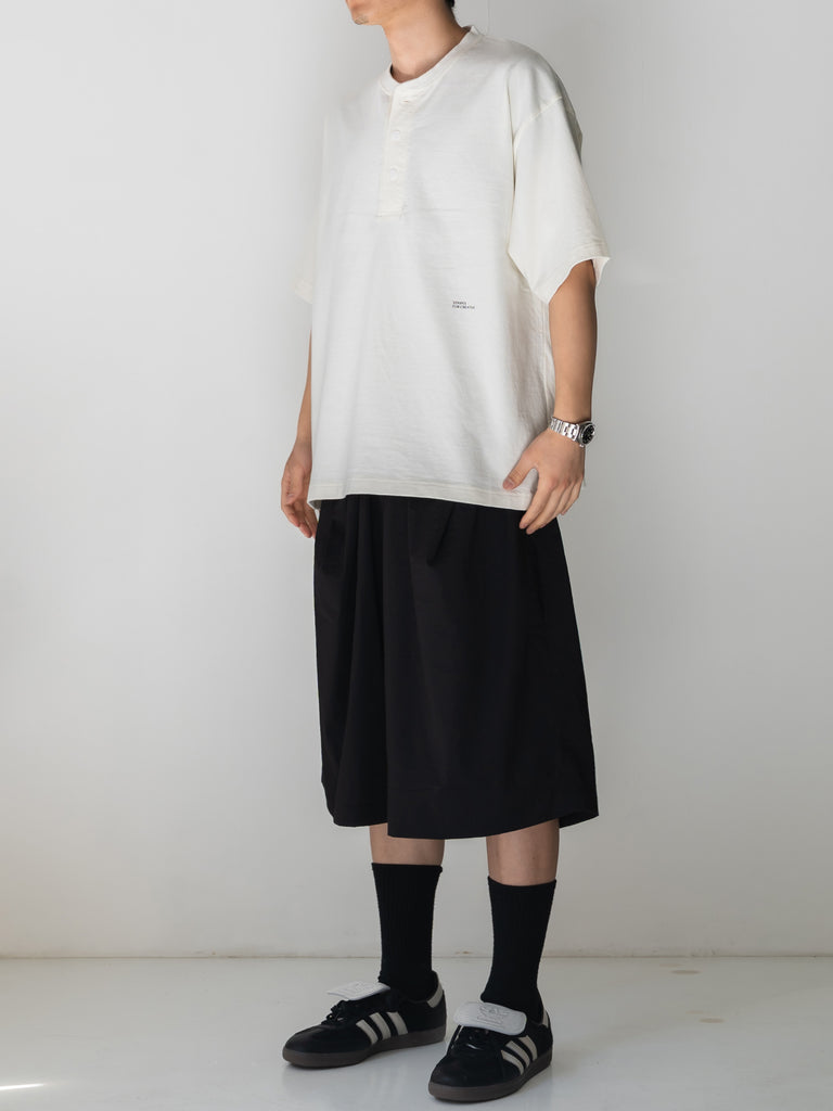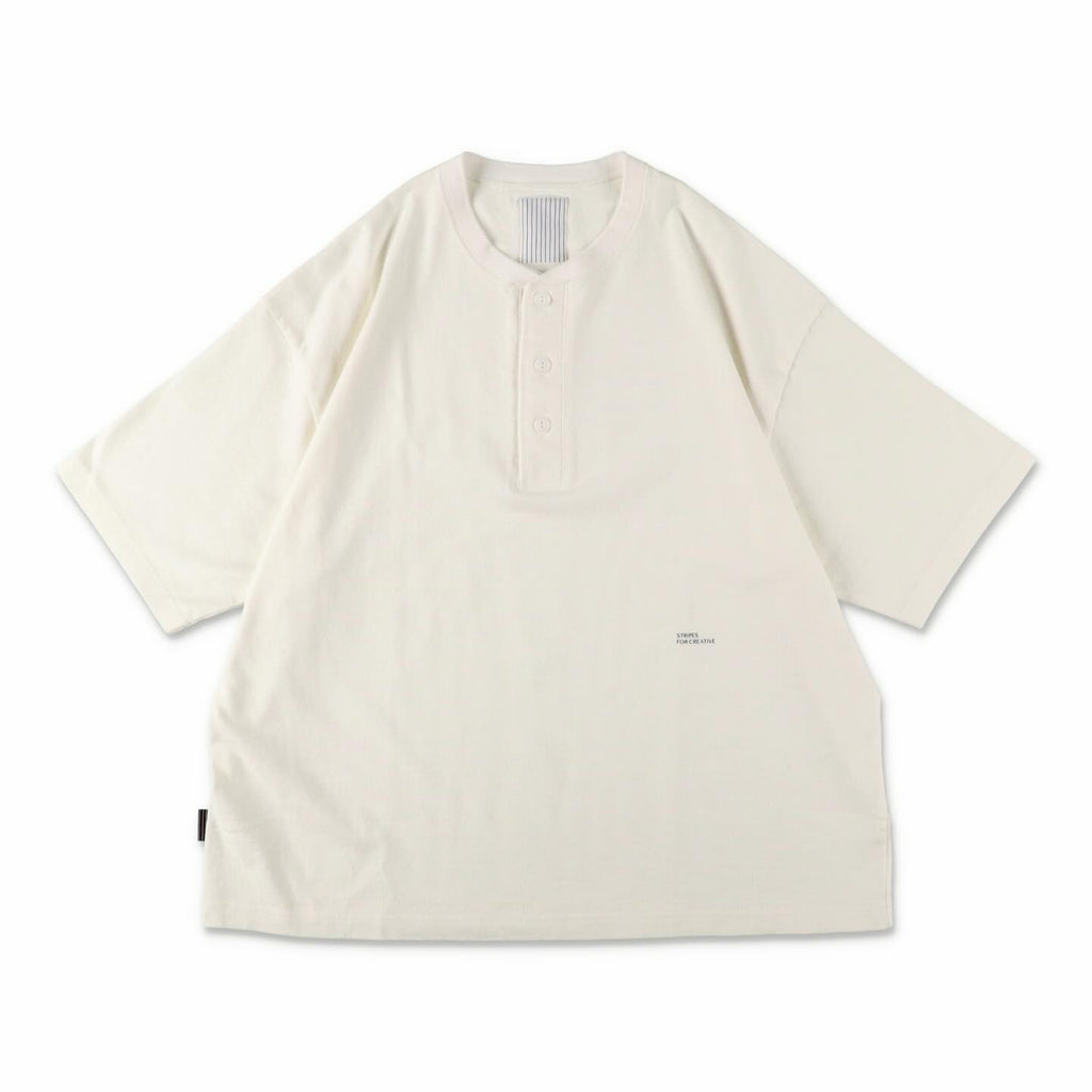 ボックスシルエットの BASIC TEE の首回りをアレンジしたヘンリーネック TEE。