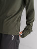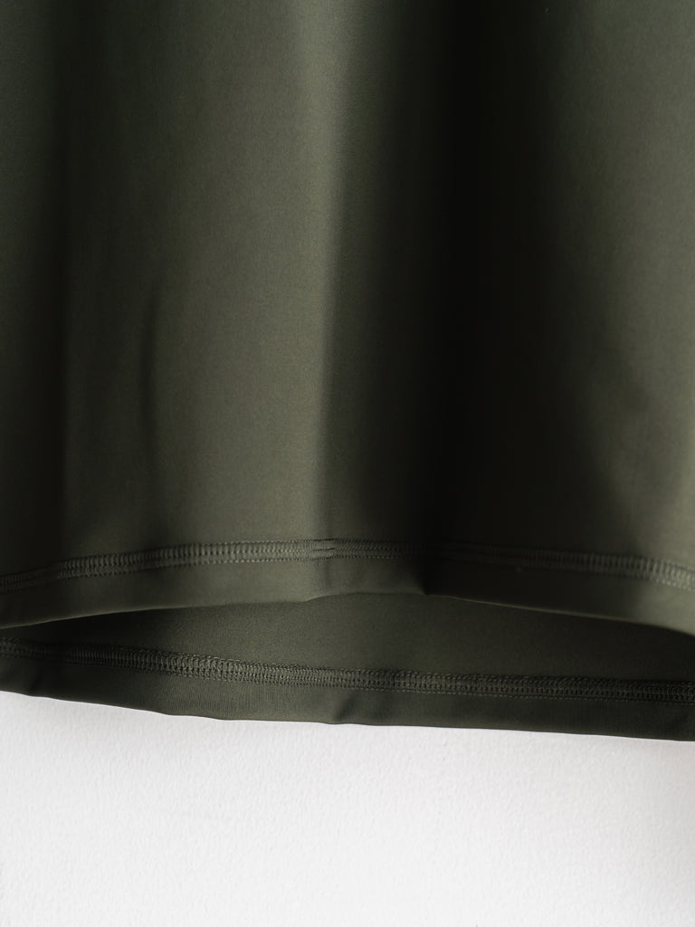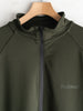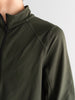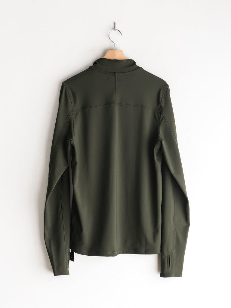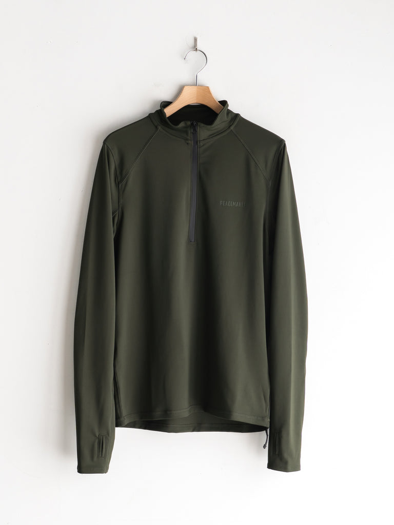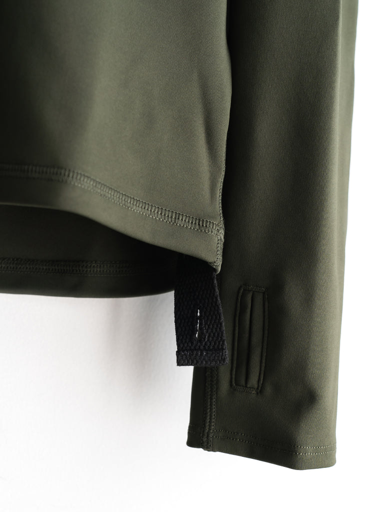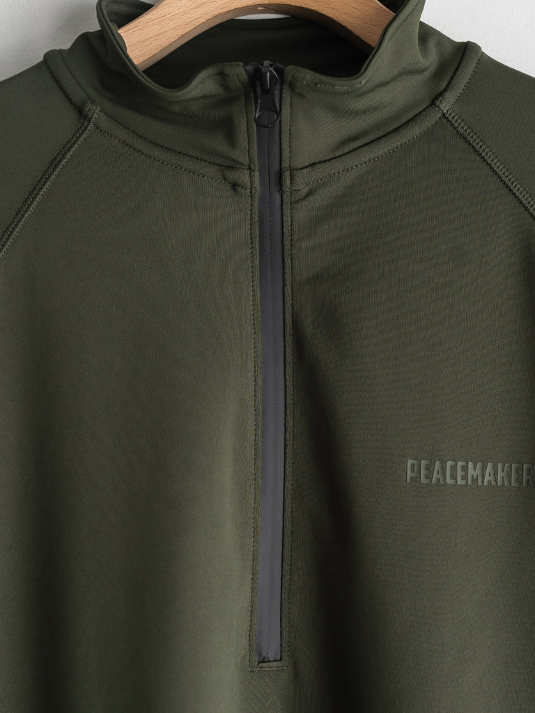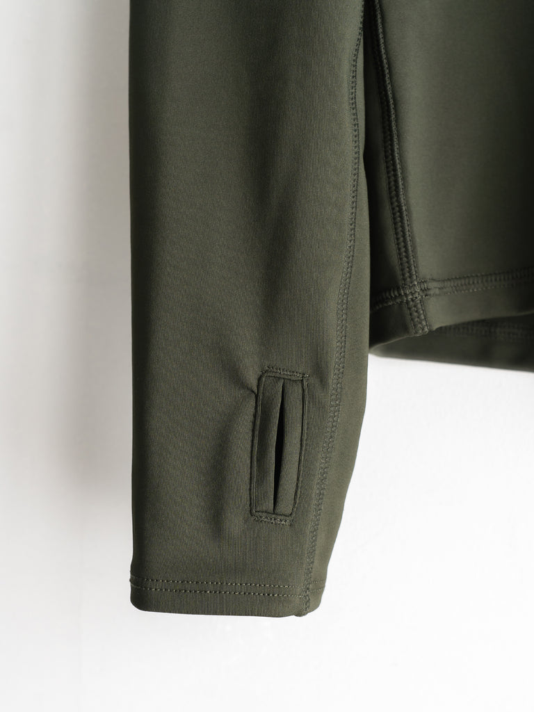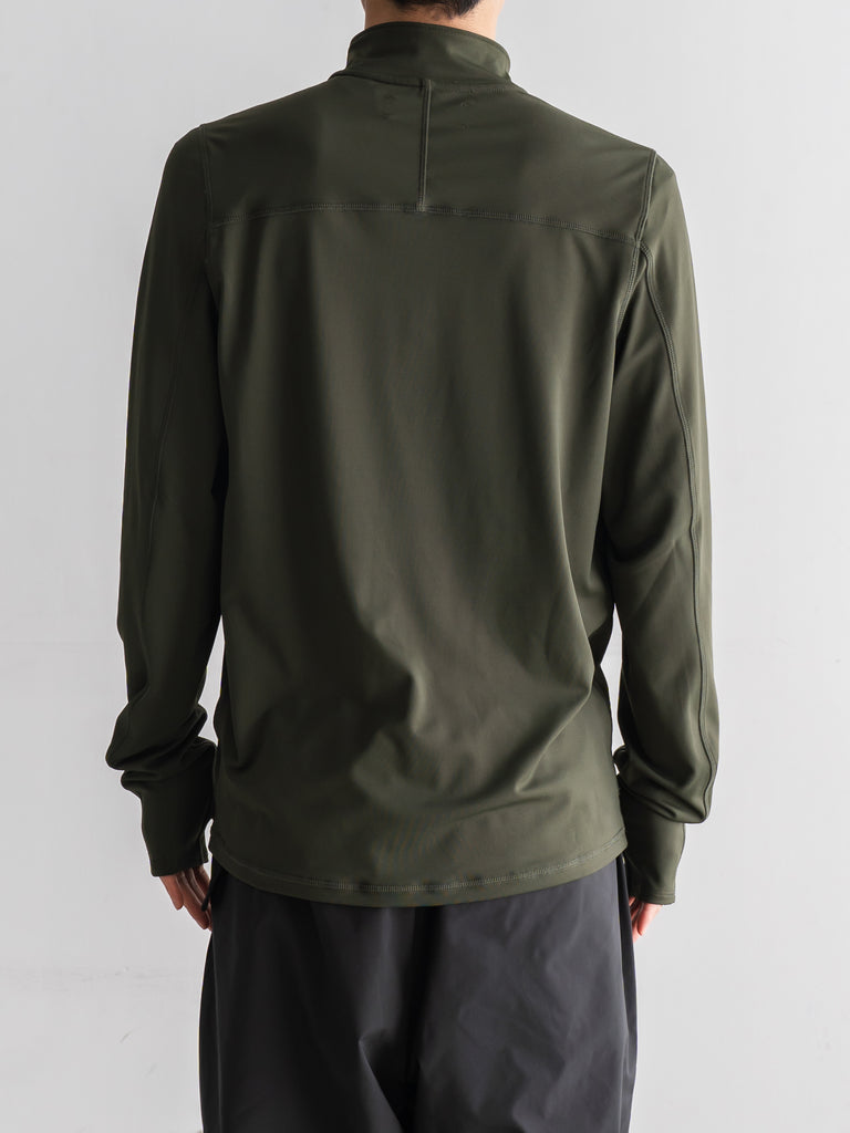 ポリエステルとスパンデックス混紡の生地の伸縮性抜群のハーフジップ。