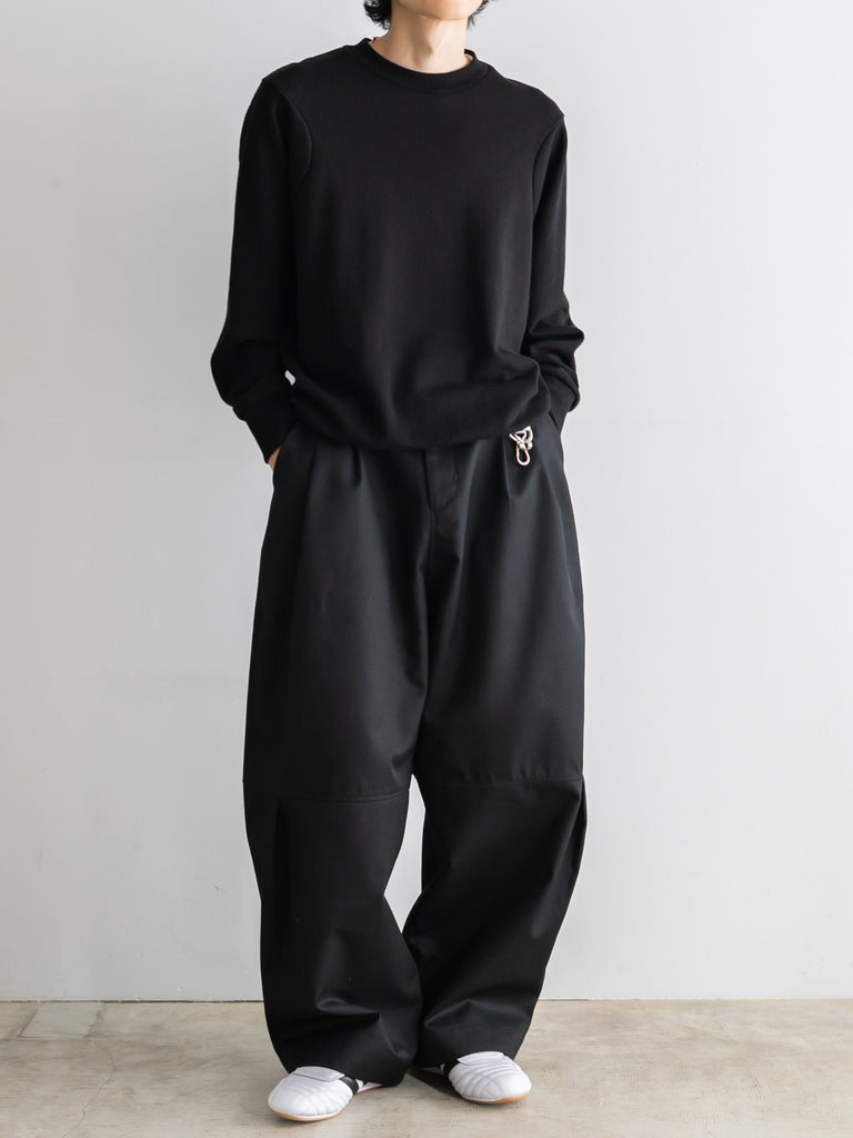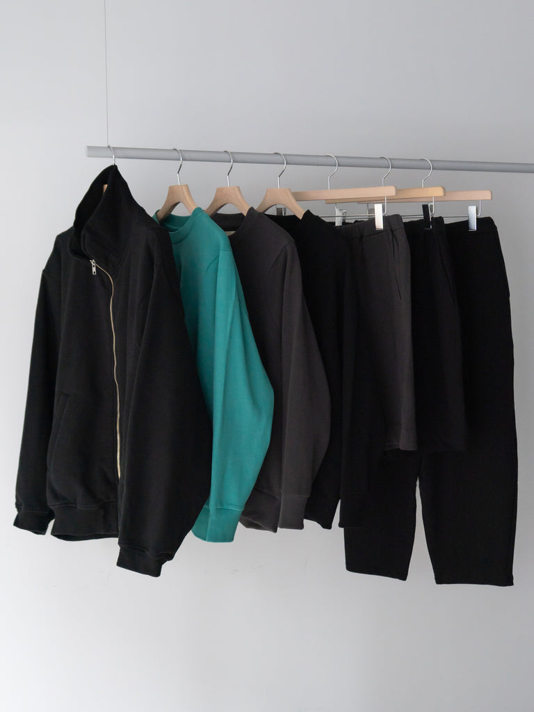 365 日、72 時間、身につけられる様な極上の着心地と、精神的な豊かさ、そして、洗濯耐性を持ち合わせる生地は、表、中、裏の糸質と撚糸をそれぞれ変えることから拘ることにより、友達との日常を尊む感覚を想像させる温かさを感じさせる。