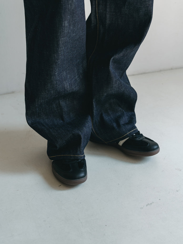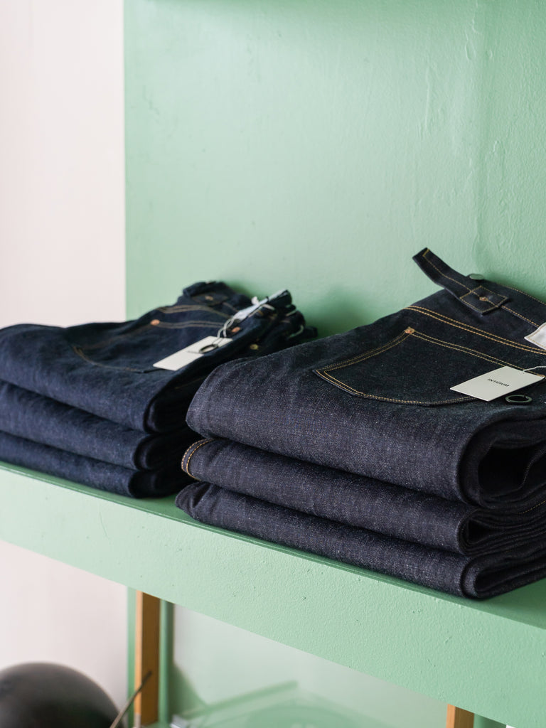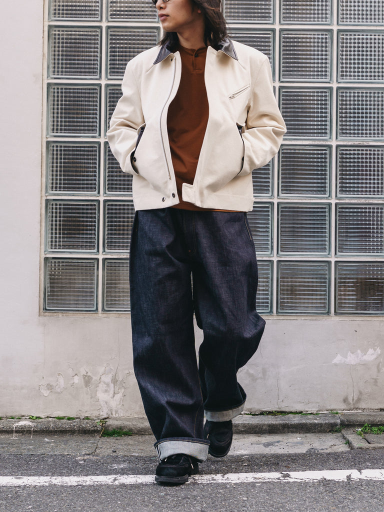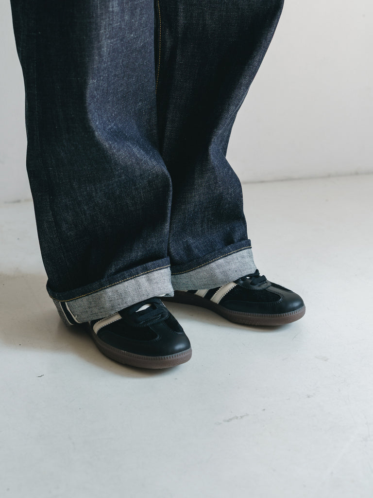 リジットの状態からはきこみ、シワやアタリをつけていくことで、洗いをかけるごとに各部位に徐々に自然な濃淡が生まれていきます。