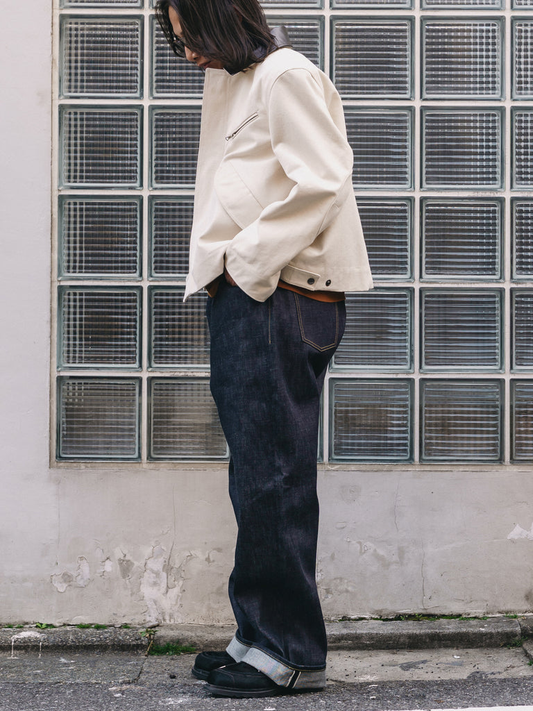 国内老舗機屋による天然藍染めの白耳セルビッジデニム。