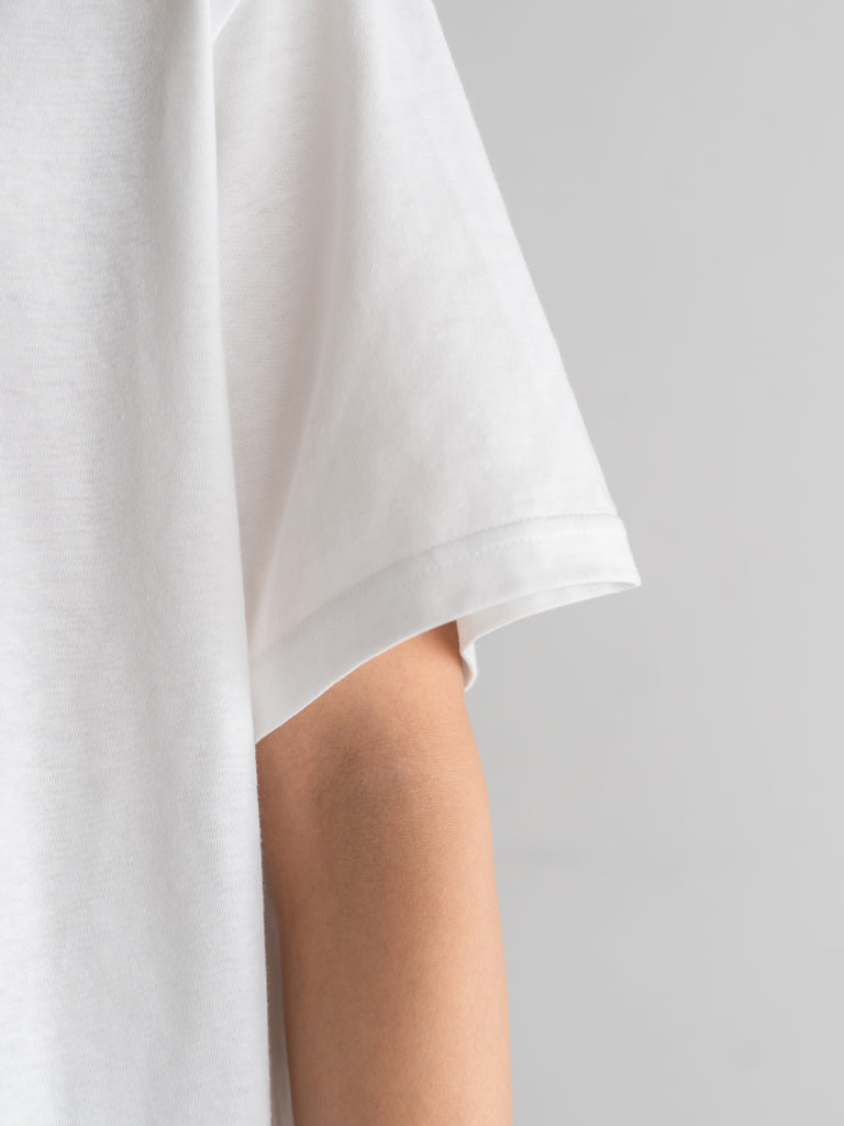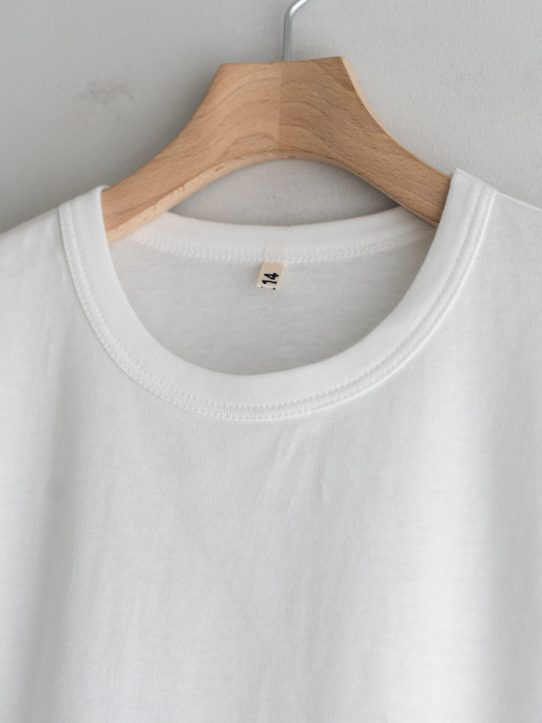 シンプルな装いの中に、静かな主張と奥行きを加えてくれるTシャツです。