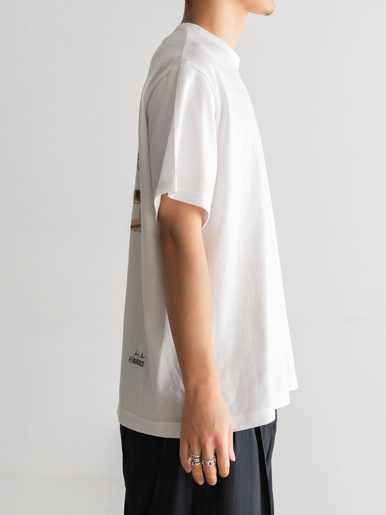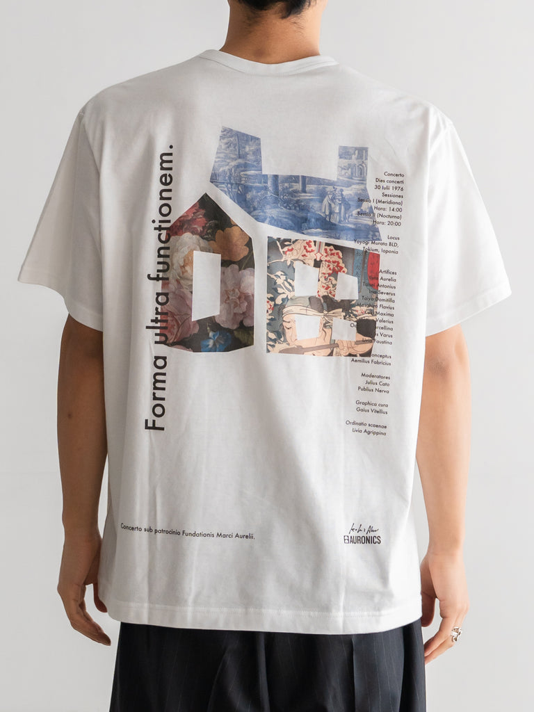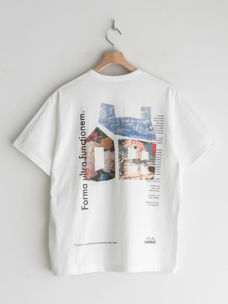 バックに印象的なグラフィックを配したショートスリーブTシャツ。