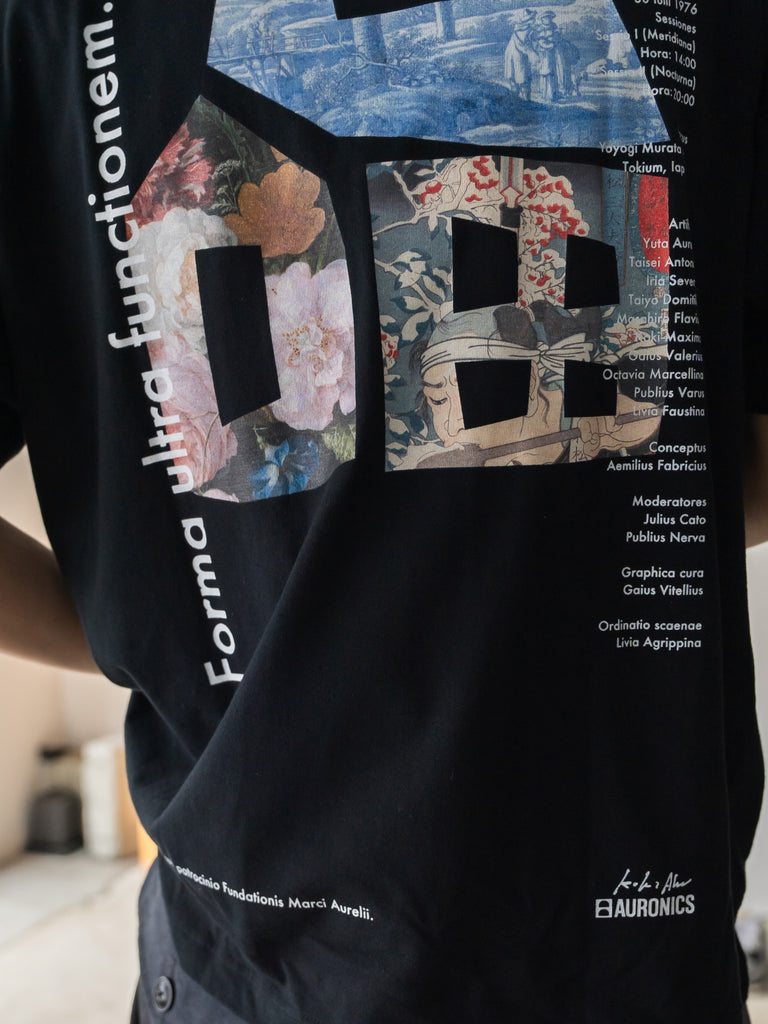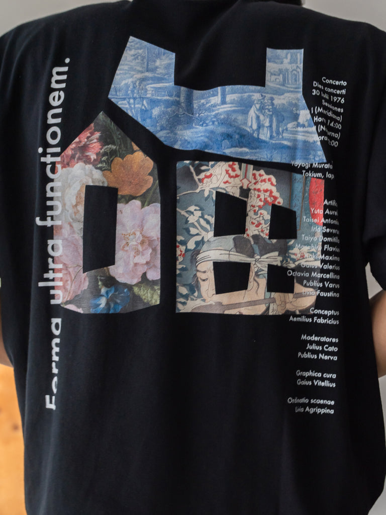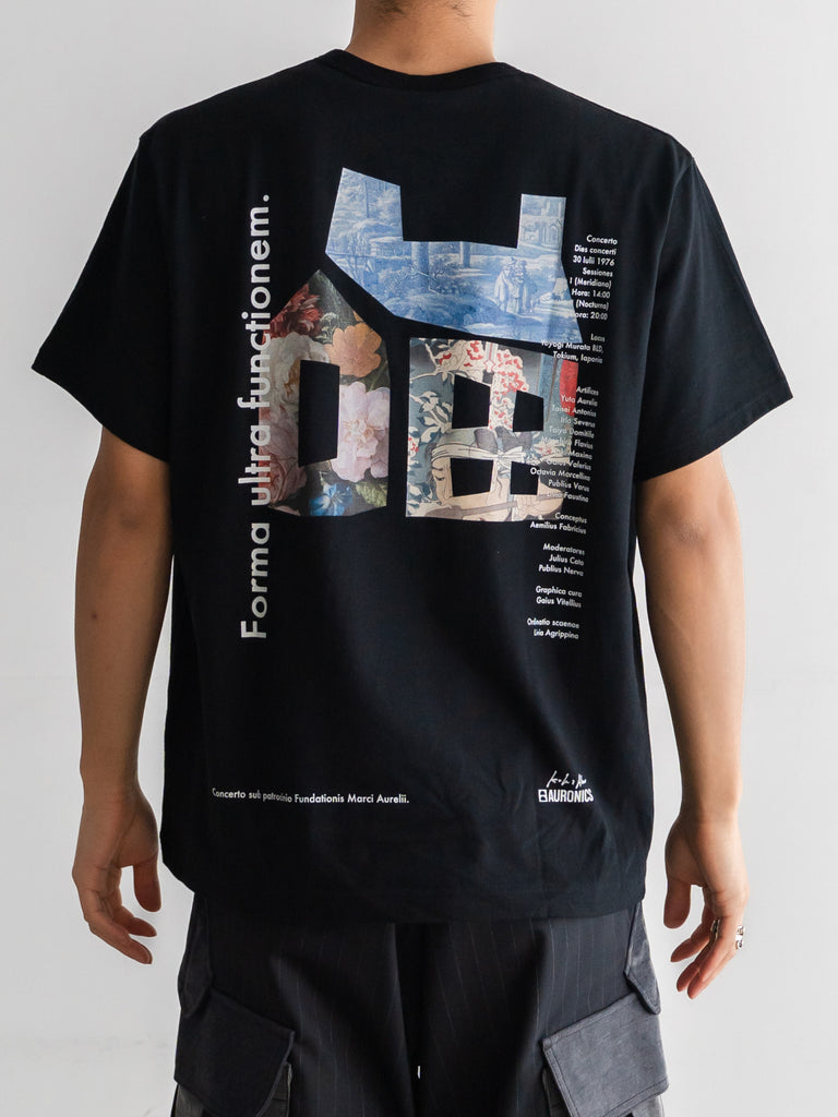 バックに印象的なグラフィックを配したショートスリーブTシャツ。
