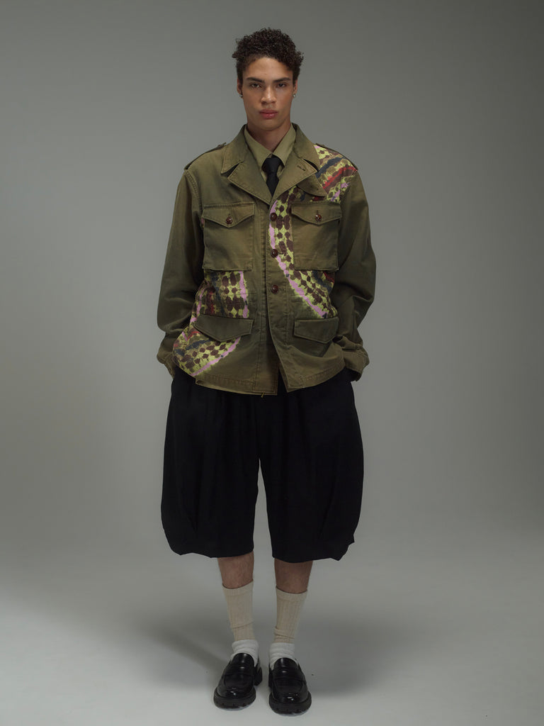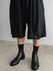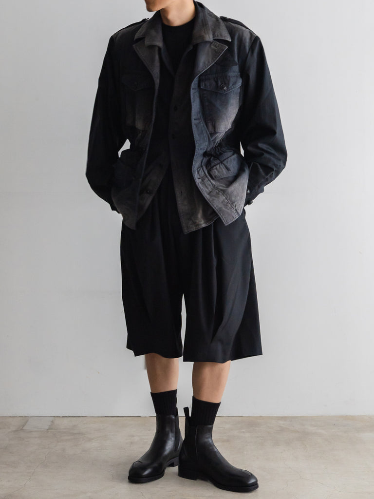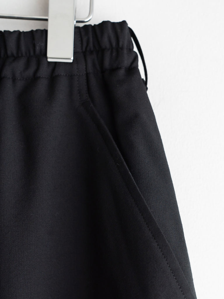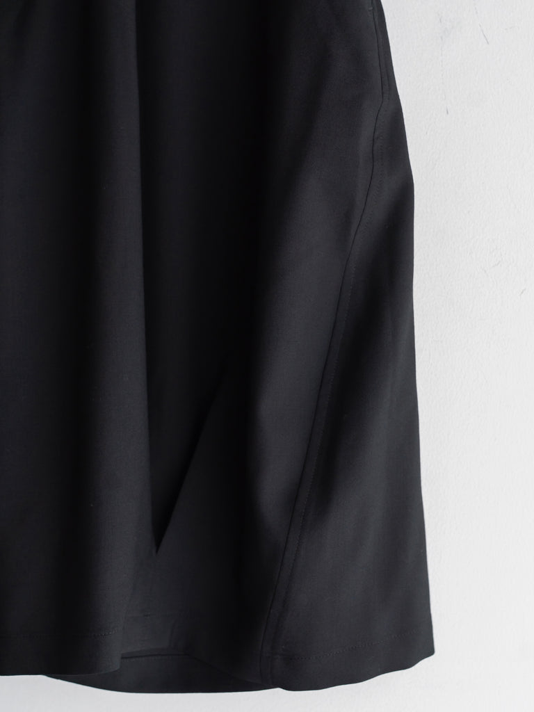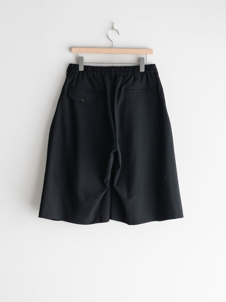 ドレスパンツの構造をベースに、ショーツとして再構築したプリーテッドバルーンドレスショーツ。