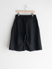 腰まわりに自然な余白を持たせつつ、裾に向かって緩やかに広がるフォルムが、ショーツでありながらスラックスのような佇まいを保ちます。