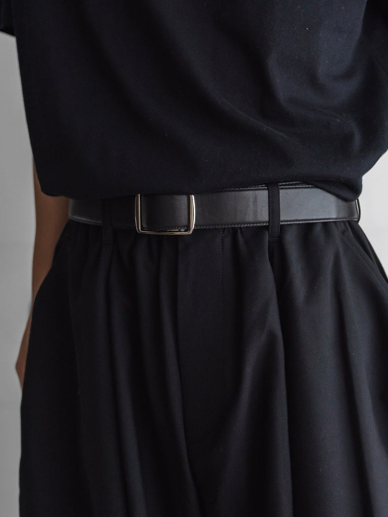 フロントに施されたプリーツが生む立体感と、ゆとりを持たせたシルエットが、軽快さの中に落ち着いた印象を与える一本です。