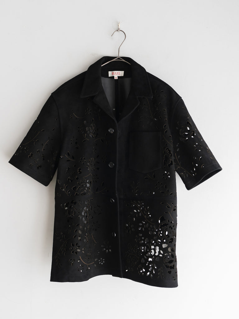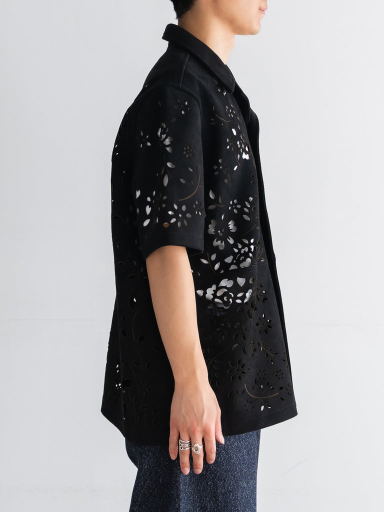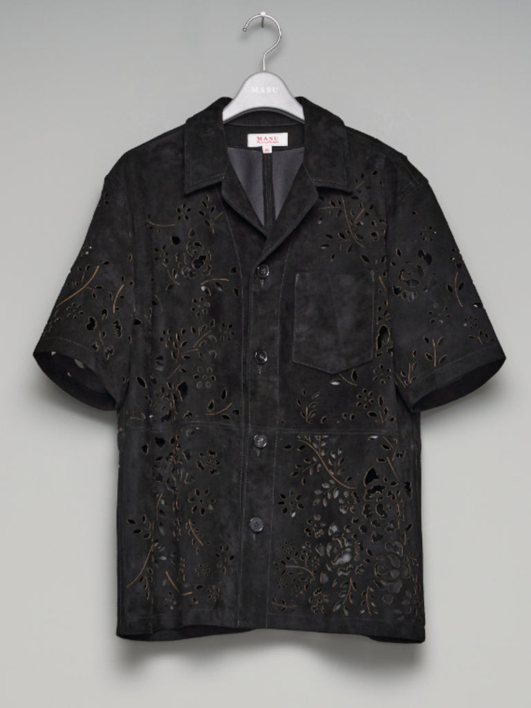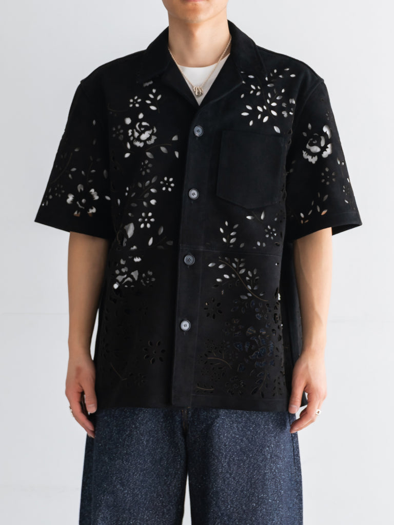 レーザーカットのオープンカラーシャツ。