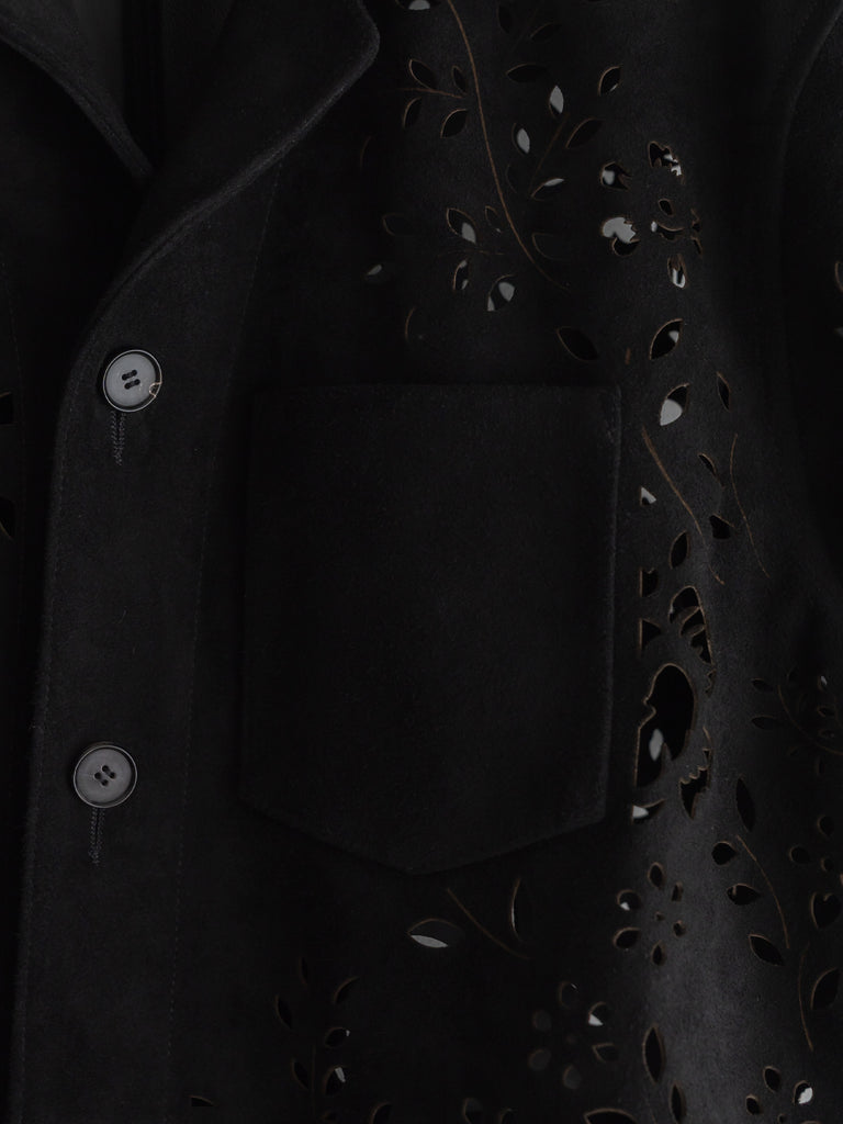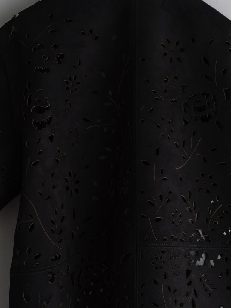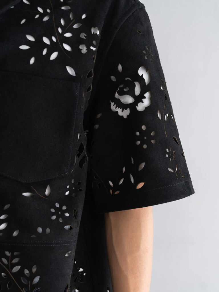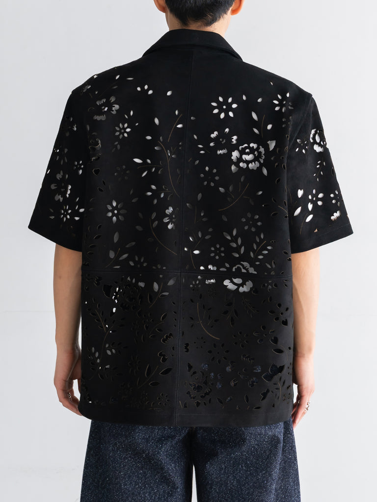 レーザーカットのオープンカラーシャツ。
