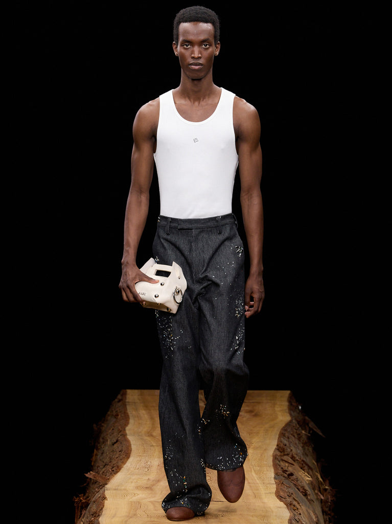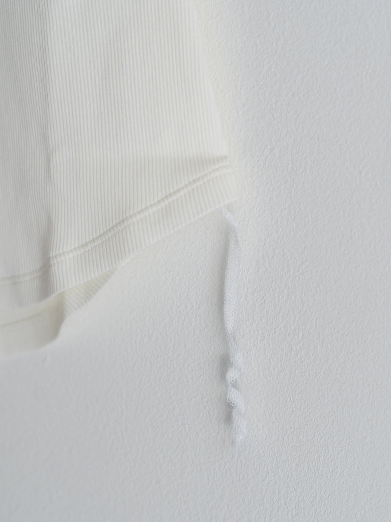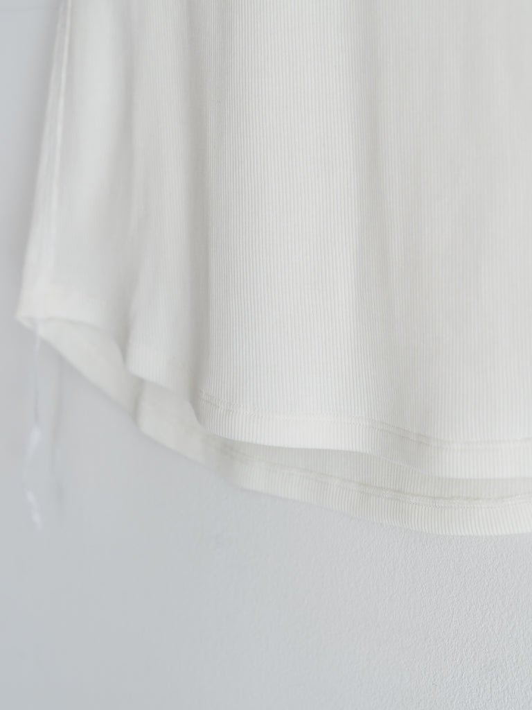 脇からはみ出したロックミシンの糸が、ミニマルな中に確かなリズムを生む。
