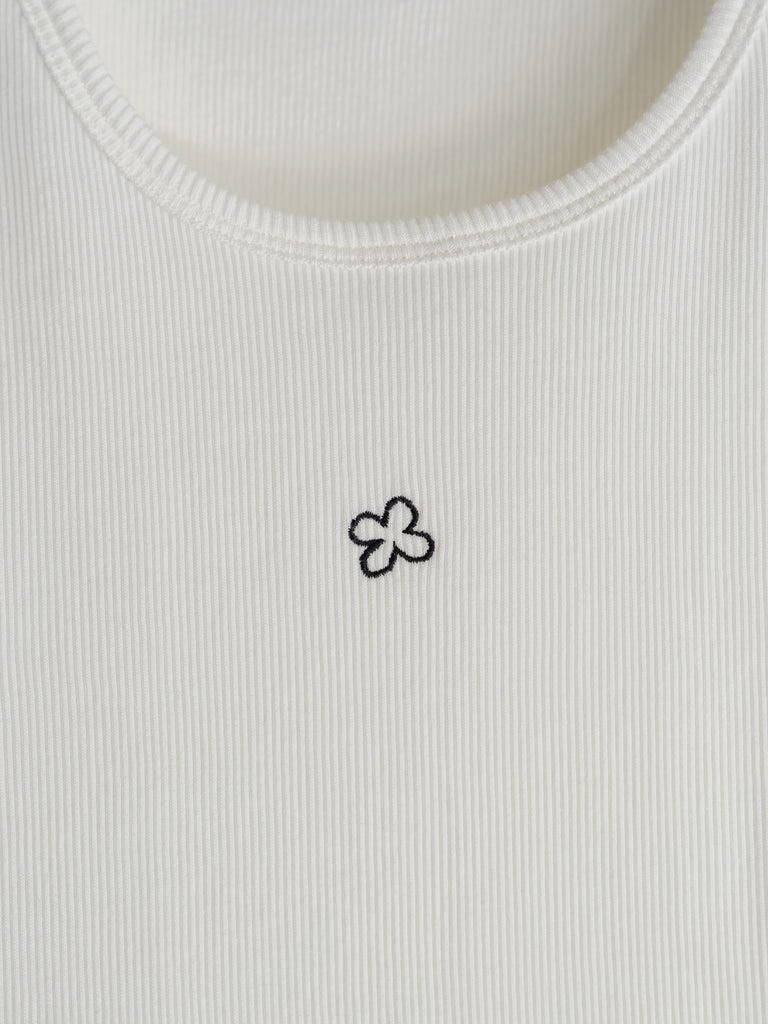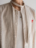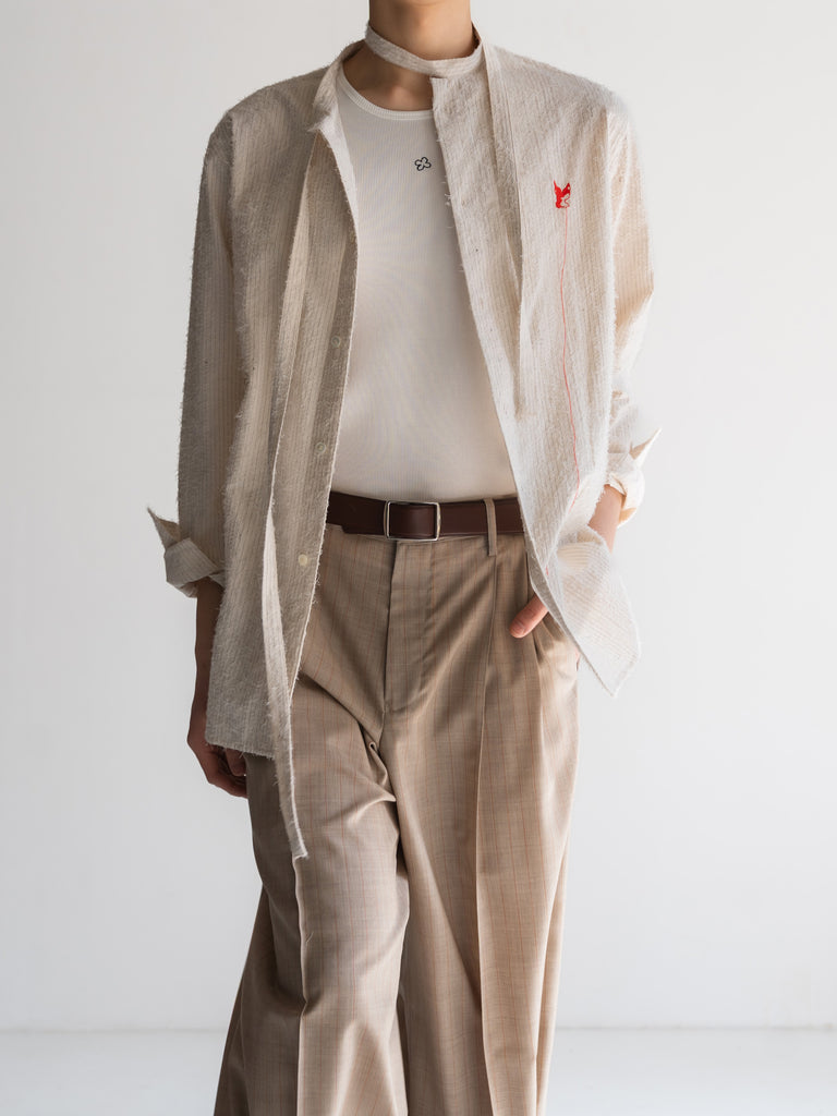中央のクローバー刺繍は、アウターやシャツの隙間から覗くささやかな遊び心。